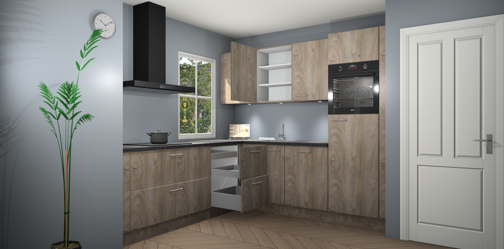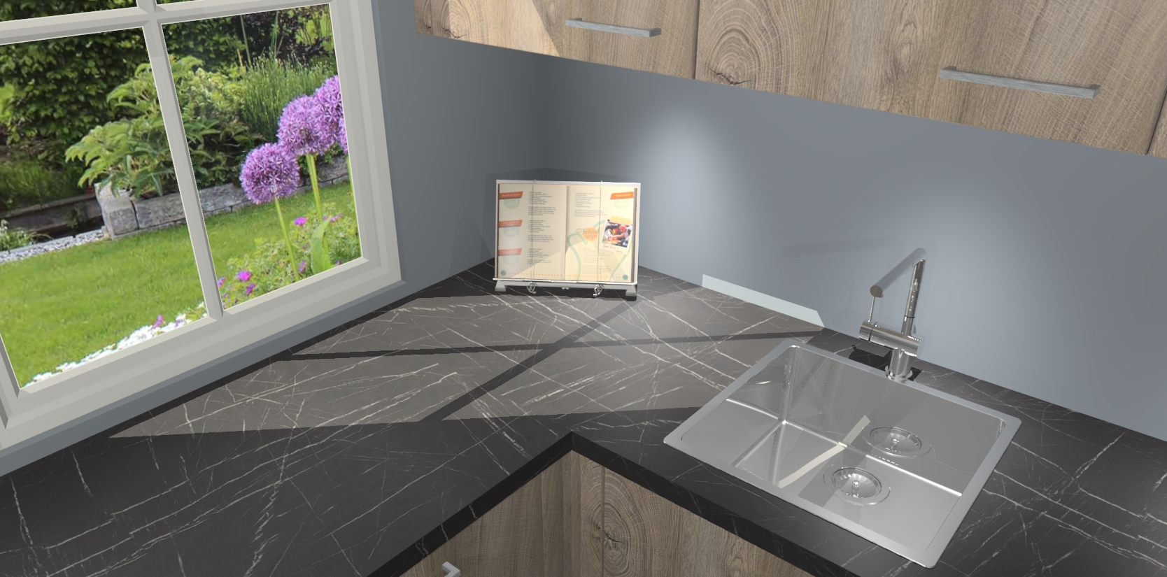• Bij een hoekwerkblad zijn de hoeken in gevreesd en op maat gemaakt