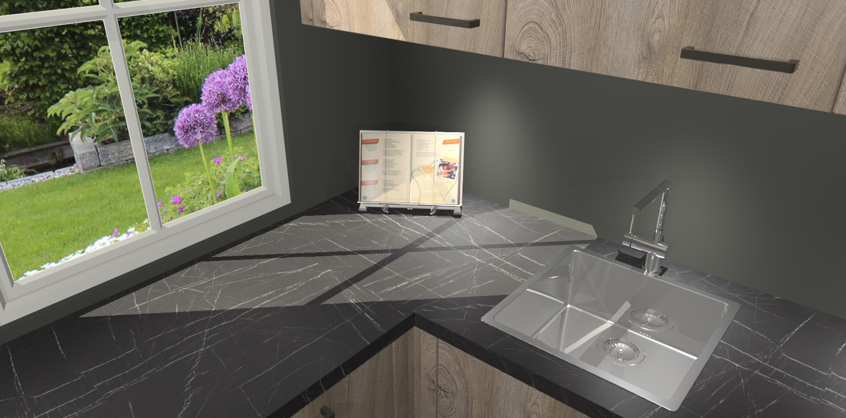 - Bij een hoekwerkblad zijn de hoeken in gevreesd en op maat gemaakt
