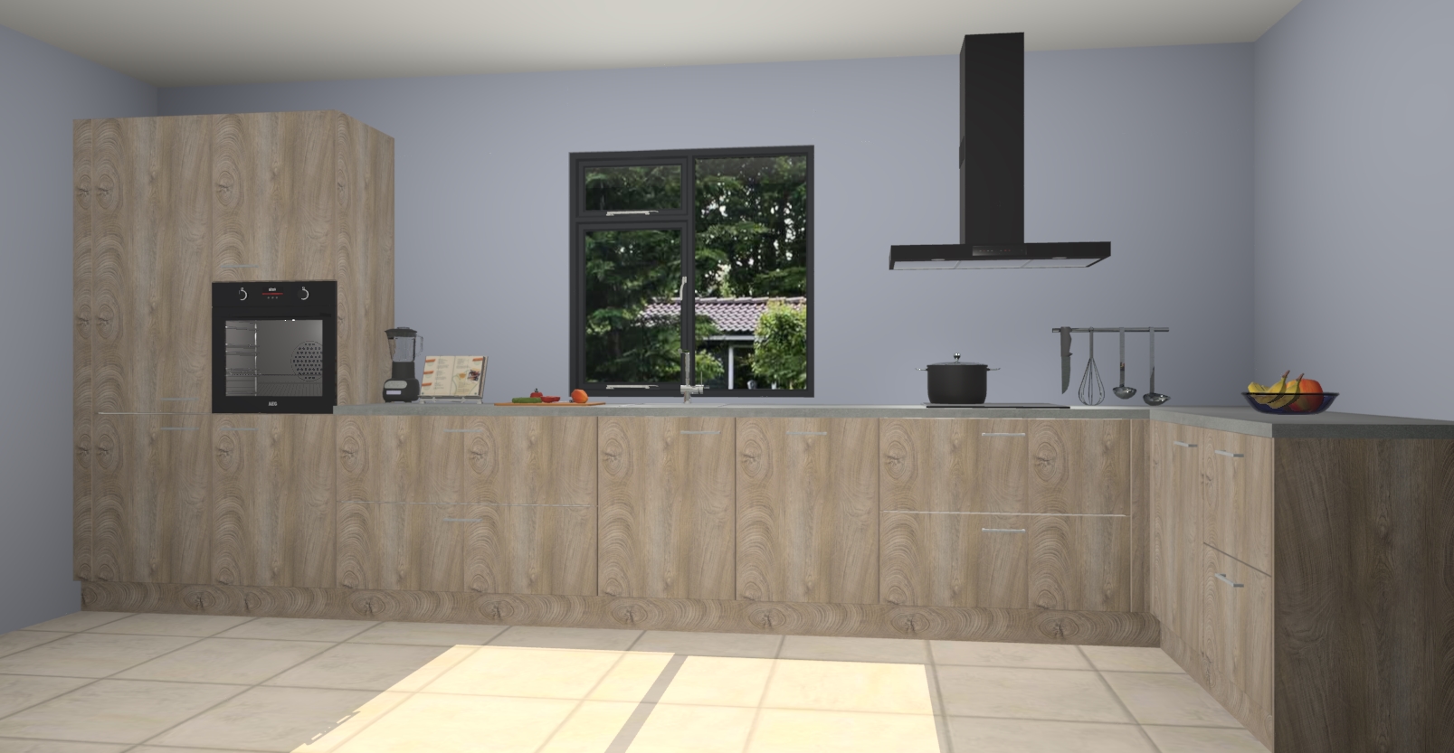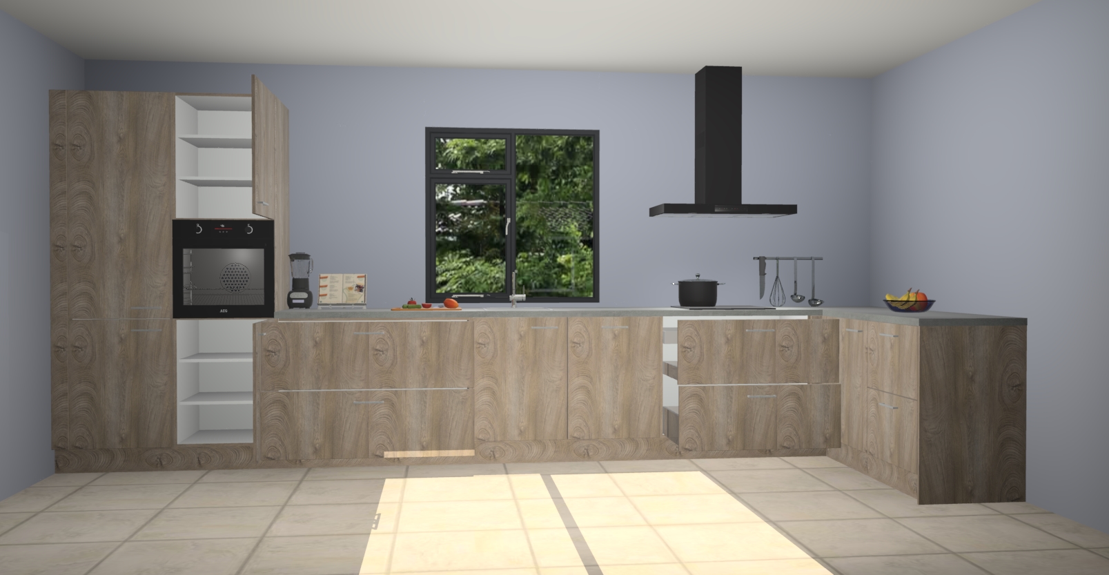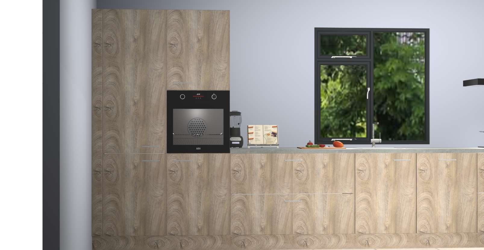 De Cantaro eiken keuken Lille wordt geleverd met vijf inbouwapparaten - een oven, inductiekookplaat, afzuigkap, vaatwasser en koelkast. Maar dat is nog niet alles! Na bestelling kunnen deze apparaten eenvoudig worden geüpgraded naar premium AEG-apparatuur. Bovendien is er zelfs de optie om de oven te vervangen door een combimagnetron of uw inductiekookplaat te vervangen door een kookplaat met geïntegreerde afzuiging.