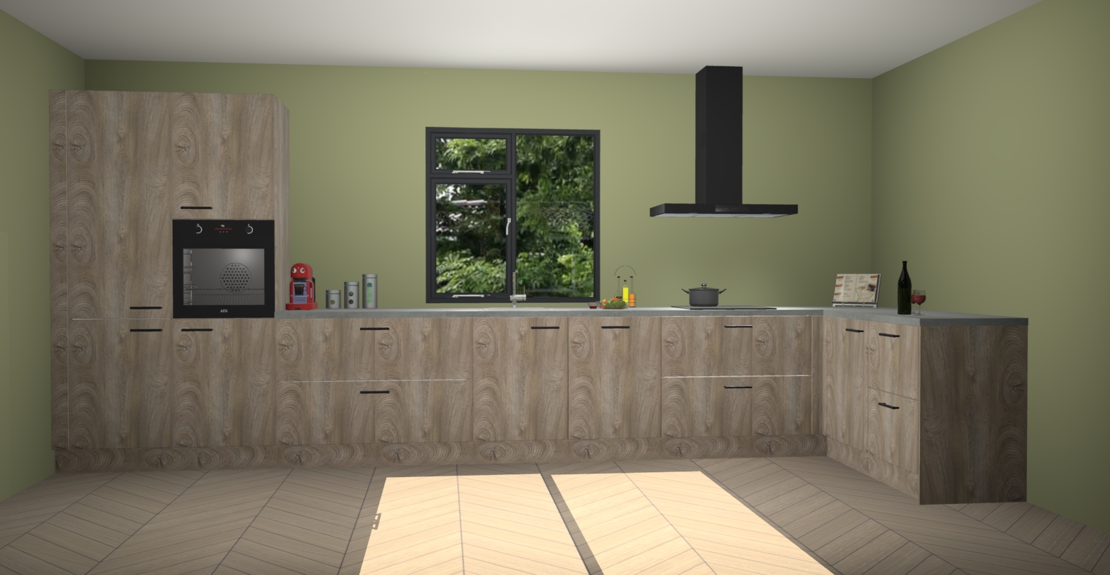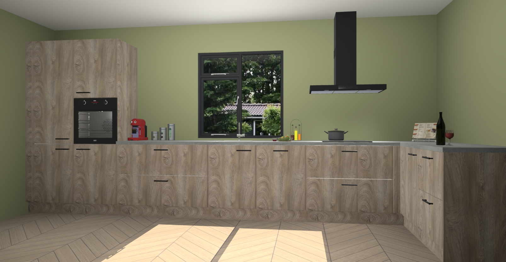 De Cantaro eiken keuken Lille wordt geleverd met vijf inbouwapparaten - een oven, inductiekookplaat, afzuigkap, vaatwasser en koelkast. Maar dat is nog niet alles! Na bestelling kunnen deze apparaten eenvoudig worden geüpgraded naar premium AEG-apparatuur. Bovendien is er zelfs de optie om de oven te vervangen door een combimagnetron of uw inductiekookplaat te vervangen door een kookplaat met geïntegreerde afzuiging.