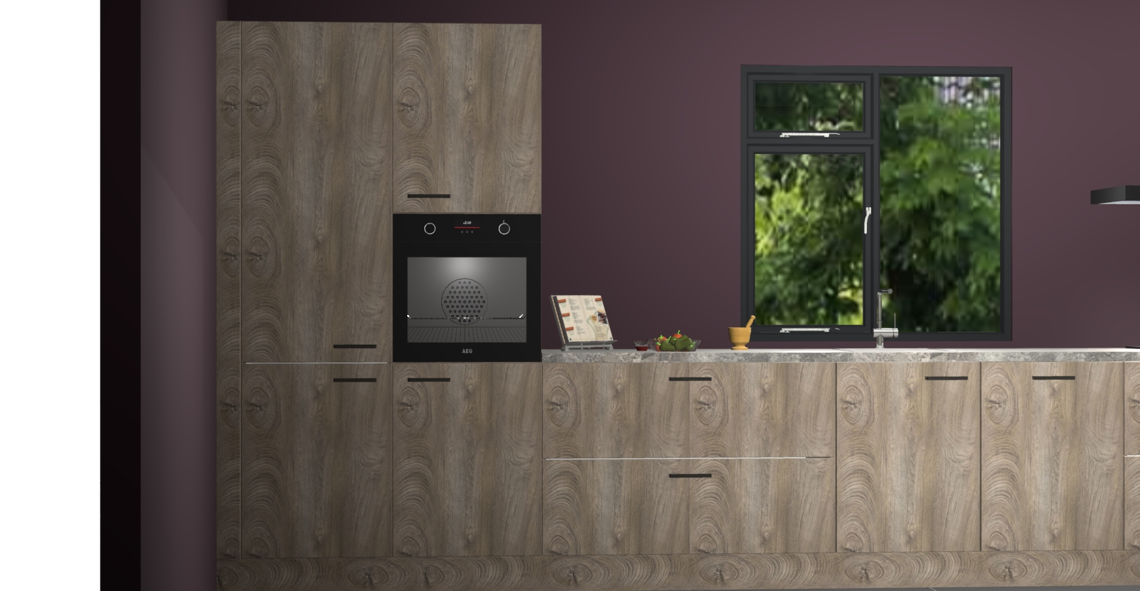 De Cantaro eiken keuken Lille wordt geleverd met vijf inbouwapparaten - een oven, inductiekookplaat, afzuigkap, vaatwasser en koelkast. Maar dat is nog niet alles! Na bestelling kunnen deze apparaten eenvoudig worden geüpgraded naar premium AEG-apparatuur. Bovendien is er zelfs de optie om de oven te vervangen door een combimagnetron of uw inductiekookplaat te vervangen door een kookplaat met geïntegreerde afzuiging.