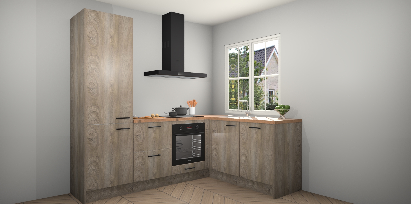 De Cantaro Eiken keuken Linz is de perfecte keuze voor uw nieuwe moderne en tijdloze keuken. Ga voor moderne en tijdloze elegantie in uw keuken. De prachtige hoekkeuken biedt een verfrissende kijk op de manier waarop we ons vertrouwde keukenontwerp kunnen aanpassen in een nieuwe stijl. Één blik om alles te zien: zo mooi dat het bijna magisch lijkt.