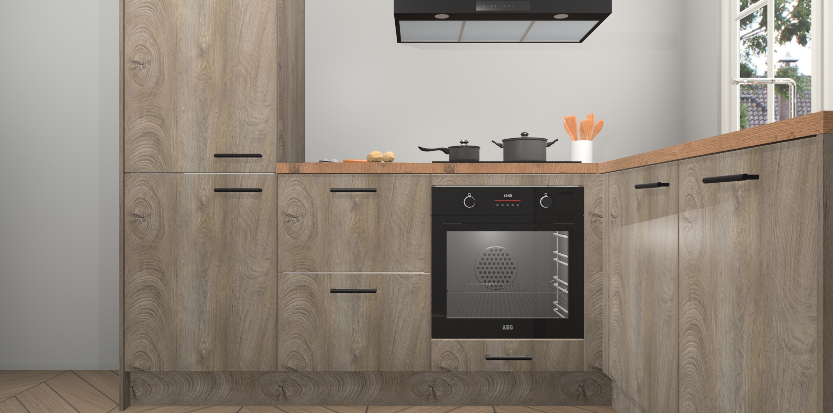 Met de Cantaro Eiken keuken Linz krijgt u 5 op maat gemaakte apparaten: een oven, inductiekookplaat, afzuigkap, vaatwasser en koelkast die na bestelling makkelijk worden geüpgraded naar AEG-producten. Met de zacht sluitende deuren, bent u verzekerd van eenvoudige bediening in stilte. Het kastmeubilair wordt alvast pre-assemblage geleverd waardoor u sneller met het installeren begint. Ook zijn alle deuren voorzien van softclose zodat er geen sporen op de lade blijven als u ze dicht doet. Bovendien hoeft u bij ons geen twijfels of verassingen te hebben: we hebben een vaste lage prijs waardoor u weet wat u mag verwachten bij elke bestelling.