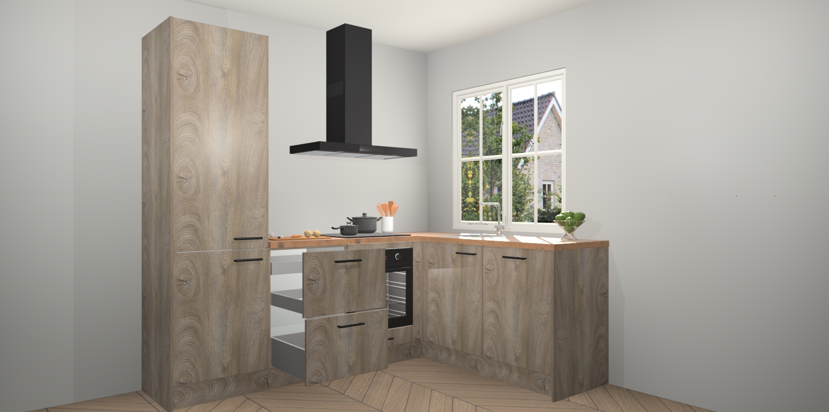 Het grote voordeel is dat uw Cantaro Eiken keuken Linz wordt geleverd met een beperkte levertijd van slechts 7 weken! Daarom moet u er snel bij zijn; want als u dit fantastische meubilair mist, kan niets anders dan spijt voelen. Ga direct aan de slag met uw droomkeuken door nu de Cantaro Eiken keuken Linz te bestellen - duizend woorden plaatjes in één woord: perfectie.
