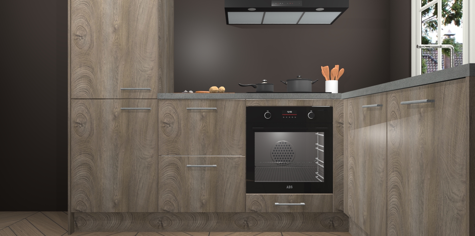 Met de Cantaro Eiken keuken Linz krijgt u 5 op maat gemaakte apparaten: een oven, inductiekookplaat, afzuigkap, vaatwasser en koelkast die na bestelling makkelijk worden geüpgraded naar AEG-producten. Met de zacht sluitende deuren, bent u verzekerd van eenvoudige bediening in stilte. Het kastmeubilair wordt alvast pre-assemblage geleverd waardoor u sneller met het installeren begint. Ook zijn alle deuren voorzien van softclose zodat er geen sporen op de lade blijven als u ze dicht doet. Bovendien hoeft u bij ons geen twijfels of verassingen te hebben: we hebben een vaste lage prijs waardoor u weet wat u mag verwachten bij elke bestelling.