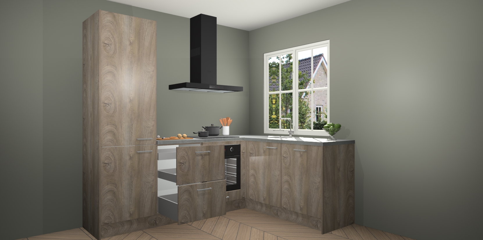De Cantaro Eiken keuken Linz is de perfecte keuze voor uw nieuwe moderne en tijdloze keuken. Ga voor moderne en tijdloze elegantie in uw keuken. De prachtige hoekkeuken biedt een verfrissende kijk op de manier waarop we ons vertrouwde keukenontwerp kunnen aanpassen in een nieuwe stijl. Één blik om alles te zien: zo mooi dat het bijna magisch lijkt.