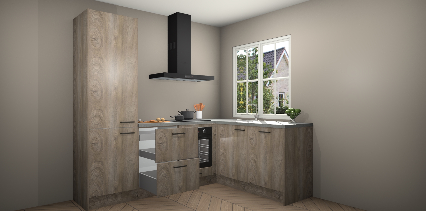 Met de Cantaro Eiken keuken Linz krijgt u 5 op maat gemaakte apparaten: een oven, inductiekookplaat, afzuigkap, vaatwasser en koelkast die na bestelling makkelijk worden geüpgraded naar AEG-producten. Met de zacht sluitende deuren, bent u verzekerd van eenvoudige bediening in stilte. Het kastmeubilair wordt alvast pre-assemblage geleverd waardoor u sneller met het installeren begint. Ook zijn alle deuren voorzien van softclose zodat er geen sporen op de lade blijven als u ze dicht doet. Bovendien hoeft u bij ons geen twijfels of verassingen te hebben: we hebben een vaste lage prijs waardoor u weet wat u mag verwachten bij elke bestelling.