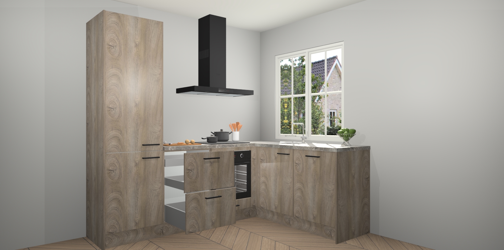 Met de Cantaro Eiken keuken Linz krijgt u 5 op maat gemaakte apparaten: een oven, inductiekookplaat, afzuigkap, vaatwasser en koelkast die na bestelling makkelijk worden geüpgraded naar AEG-producten. Met de zacht sluitende deuren, bent u verzekerd van eenvoudige bediening in stilte. Het kastmeubilair wordt alvast pre-assemblage geleverd waardoor u sneller met het installeren begint. Ook zijn alle deuren voorzien van softclose zodat er geen sporen op de lade blijven als u ze dicht doet. Bovendien hoeft u bij ons geen twijfels of verassingen te hebben: we hebben een vaste lage prijs waardoor u weet wat u mag verwachten bij elke bestelling.
