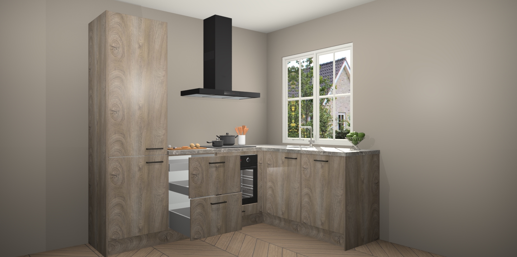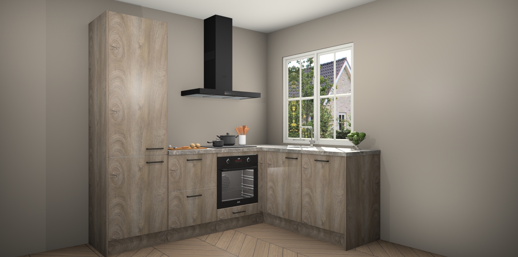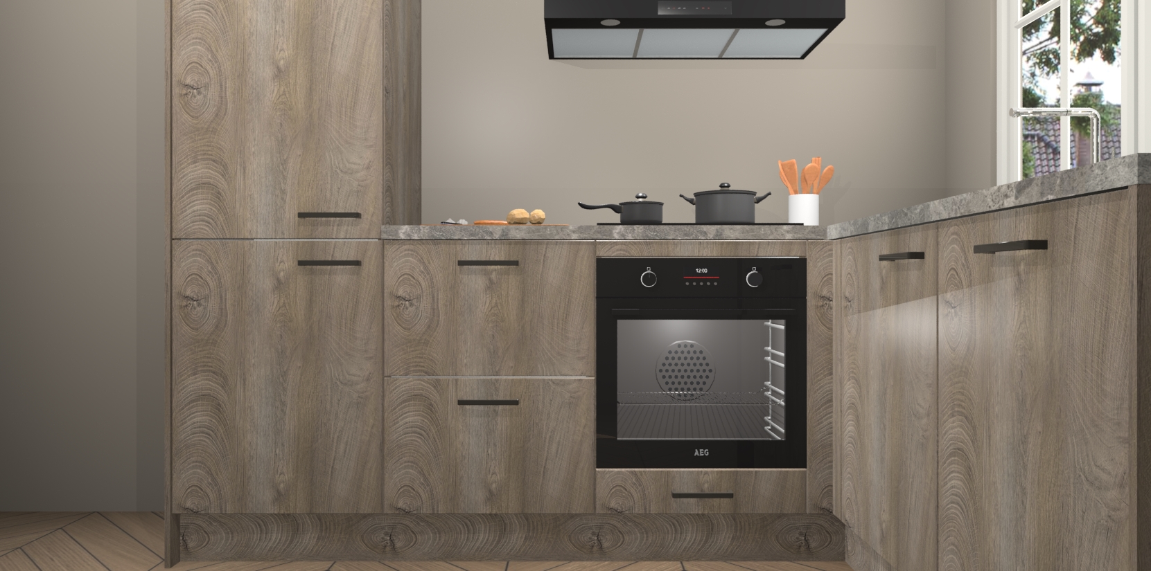 De Cantaro Eiken keuken Linz is de perfecte keuze voor uw nieuwe moderne en tijdloze keuken. Ga voor moderne en tijdloze elegantie in uw keuken. De prachtige hoekkeuken biedt een verfrissende kijk op de manier waarop we ons vertrouwde keukenontwerp kunnen aanpassen in een nieuwe stijl. Één blik om alles te zien: zo mooi dat het bijna magisch lijkt.