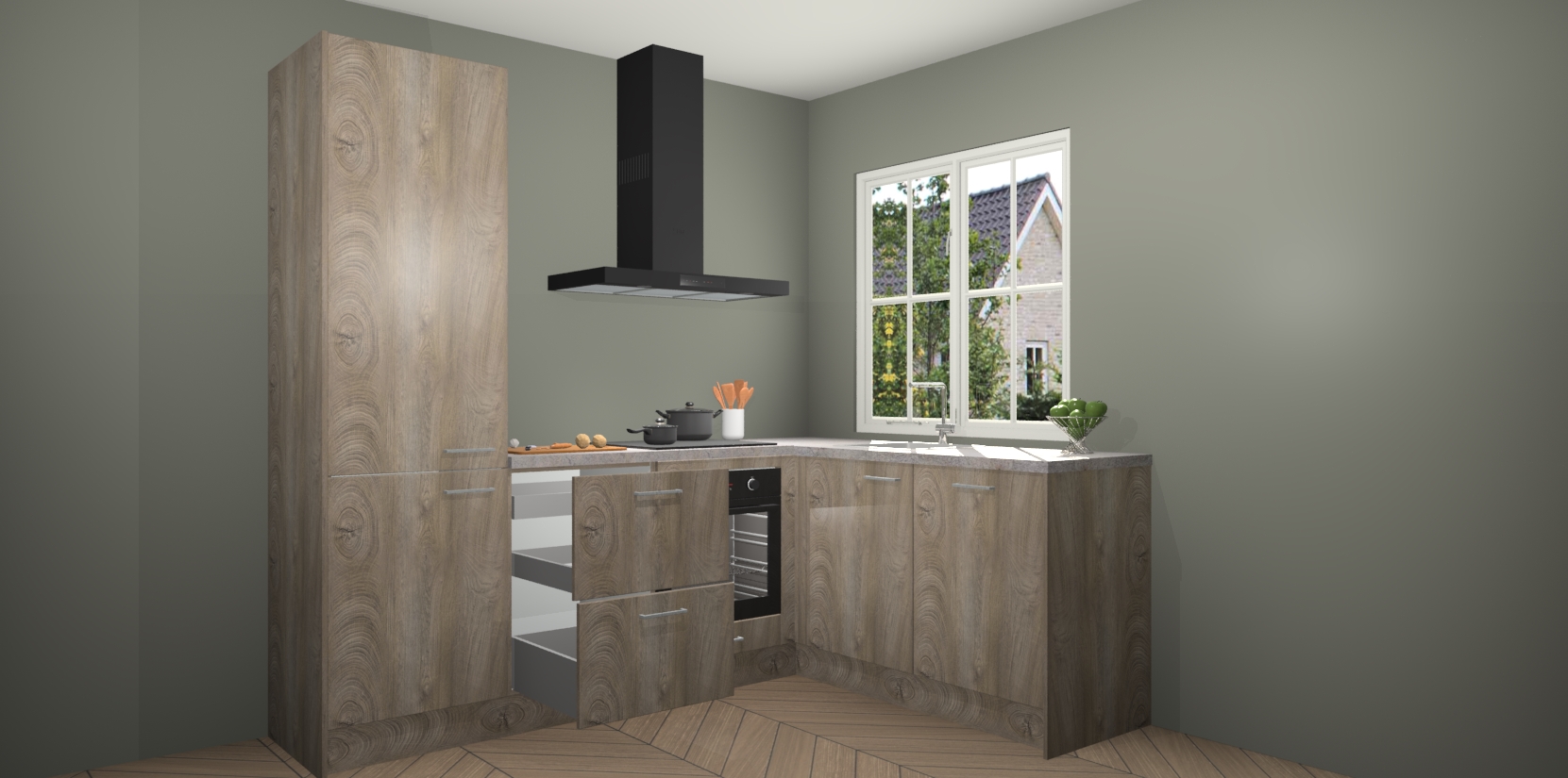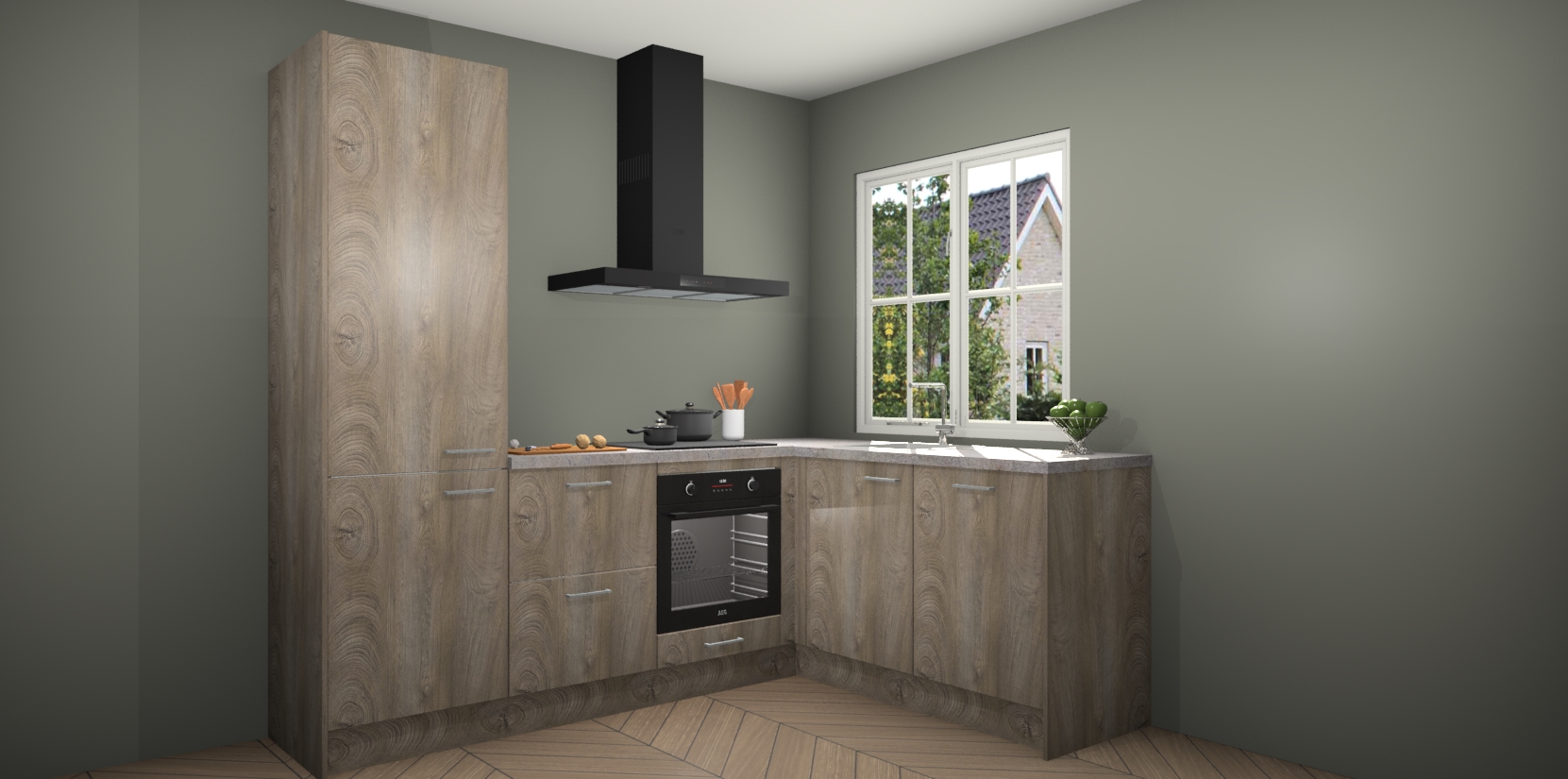 De Cantaro Eiken keuken Linz is de perfecte keuze voor uw nieuwe moderne en tijdloze keuken. Ga voor moderne en tijdloze elegantie in uw keuken. De prachtige hoekkeuken biedt een verfrissende kijk op de manier waarop we ons vertrouwde keukenontwerp kunnen aanpassen in een nieuwe stijl.  Één blik om alles te zien: zo mooi dat het bijna magisch lijkt.