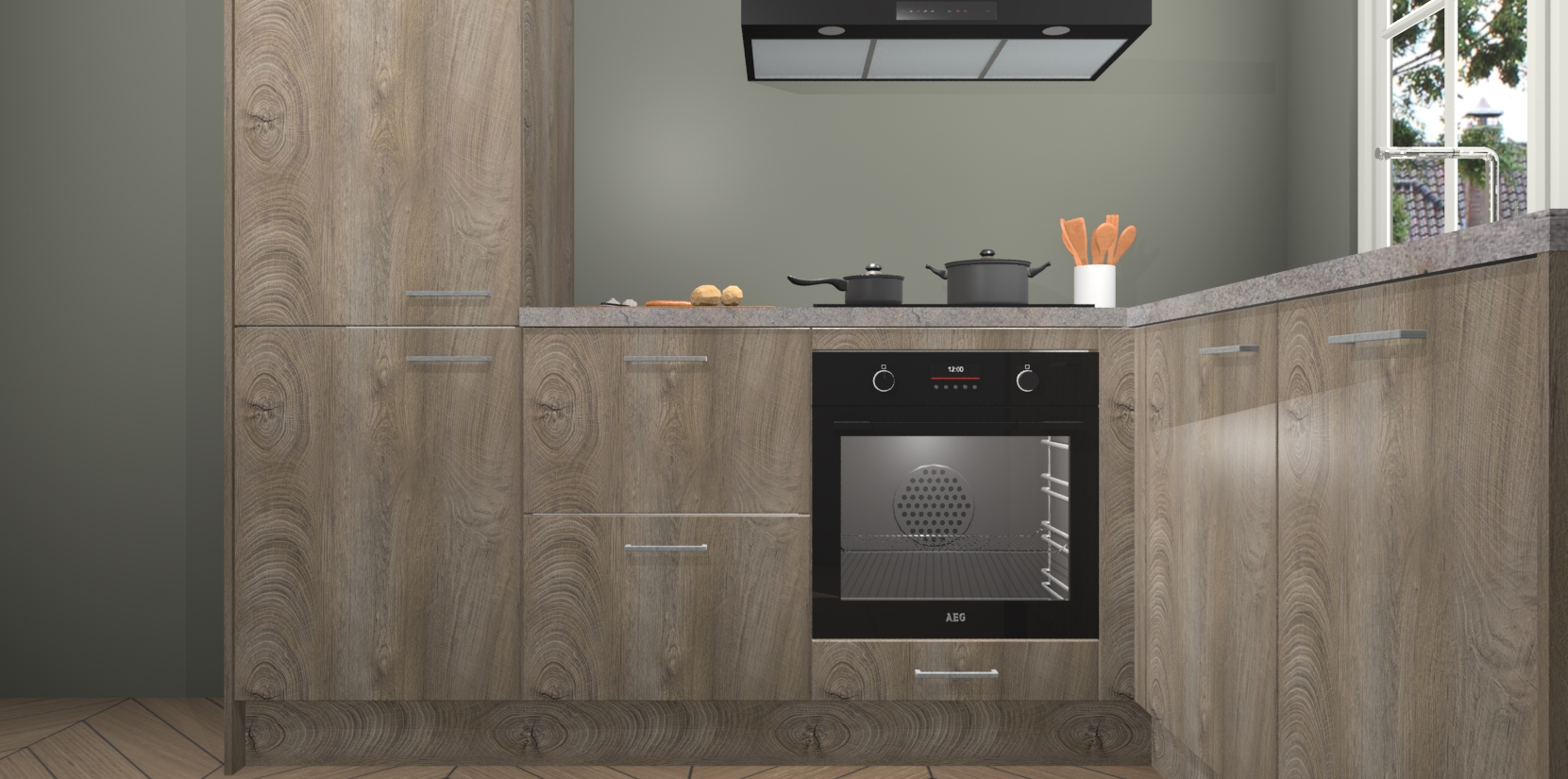Met de Cantaro Eiken keuken Linz krijgt u 5 op maat gemaakte apparaten: een oven, inductiekookplaat, afzuigkap, vaatwasser en koelkast die na bestelling makkelijk worden geüpgraded naar AEG-producten. Met de zacht sluitende deuren, bent u verzekerd van eenvoudige bediening in stilte. Het kastmeubilair wordt alvast pre-assemblage geleverd waardoor u sneller met het installeren begint. Ook zijn alle deuren voorzien van softclose zodat er geen sporen op de lade blijven als u ze dicht doet. Bovendien hoeft u bij ons geen twijfels of verassingen te hebben: we hebben een vaste lage prijs waardoor u weet wat u mag verwachten bij elke bestelling.