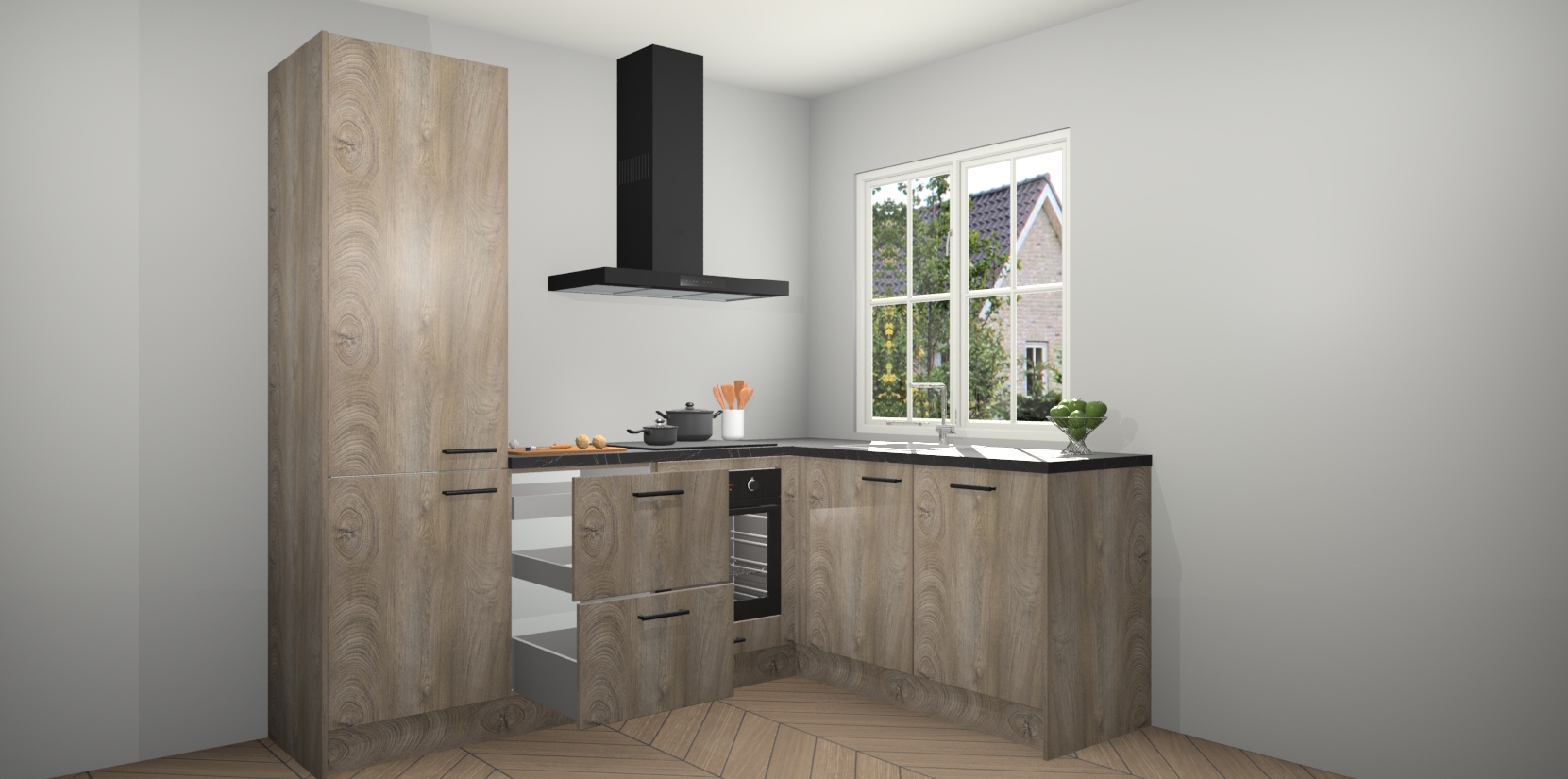 Met de Cantaro Eiken keuken Linz krijgt u 5 op maat gemaakte apparaten: een oven, inductiekookplaat, afzuigkap, vaatwasser en koelkast die na bestelling makkelijk worden geüpgraded naar AEG-producten. Met de zacht sluitende deuren, bent u verzekerd van eenvoudige bediening in stilte. Het kastmeubilair wordt alvast pre-assemblage geleverd waardoor u sneller met het installeren begint. Ook zijn alle deuren voorzien van softclose zodat er geen sporen op de lade blijven als u ze dicht doet. Bovendien hoeft u bij ons geen twijfels of verassingen te hebben: we hebben een vaste lage prijs waardoor u weet wat u mag verwachten bij elke bestelling.