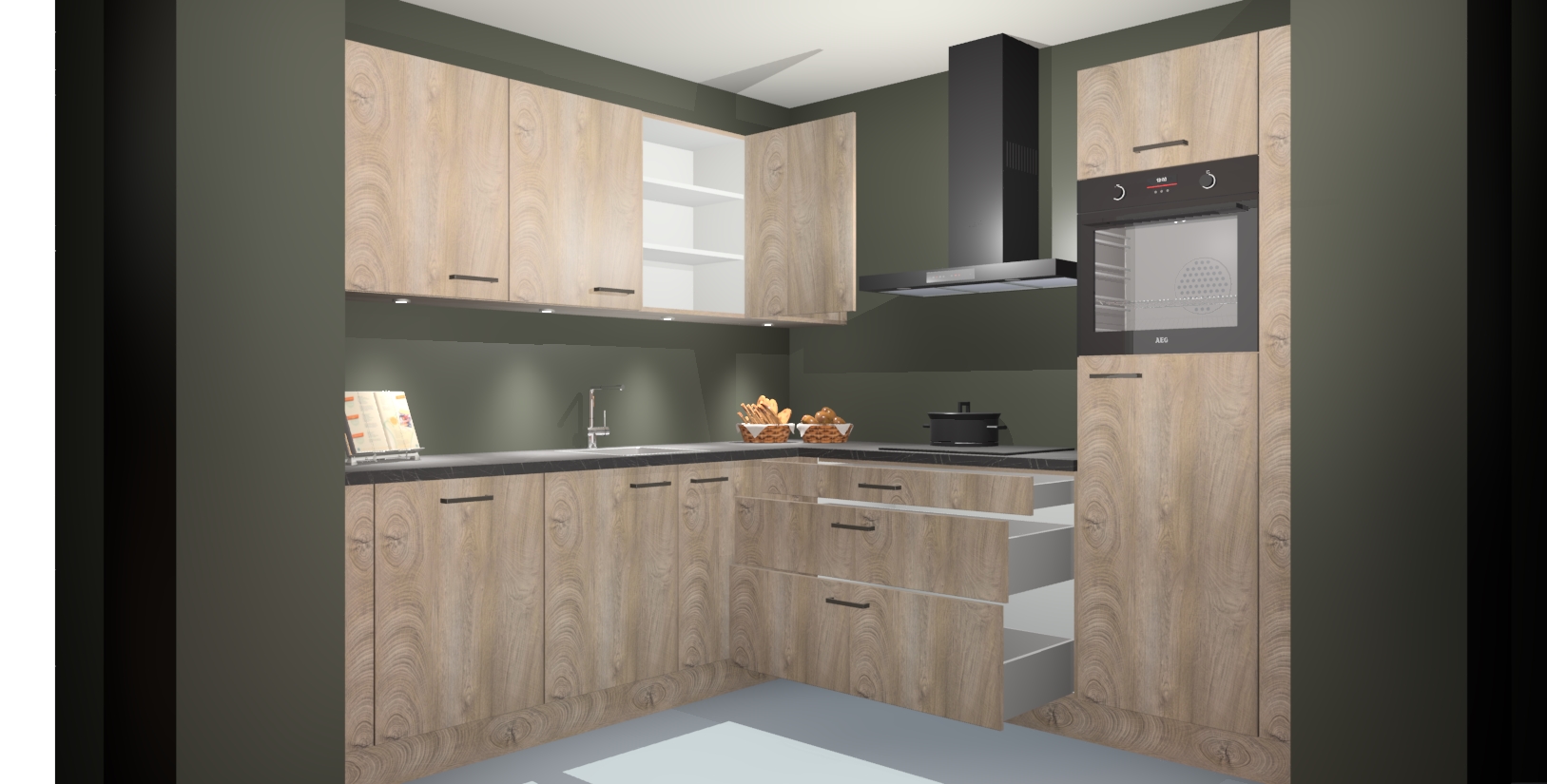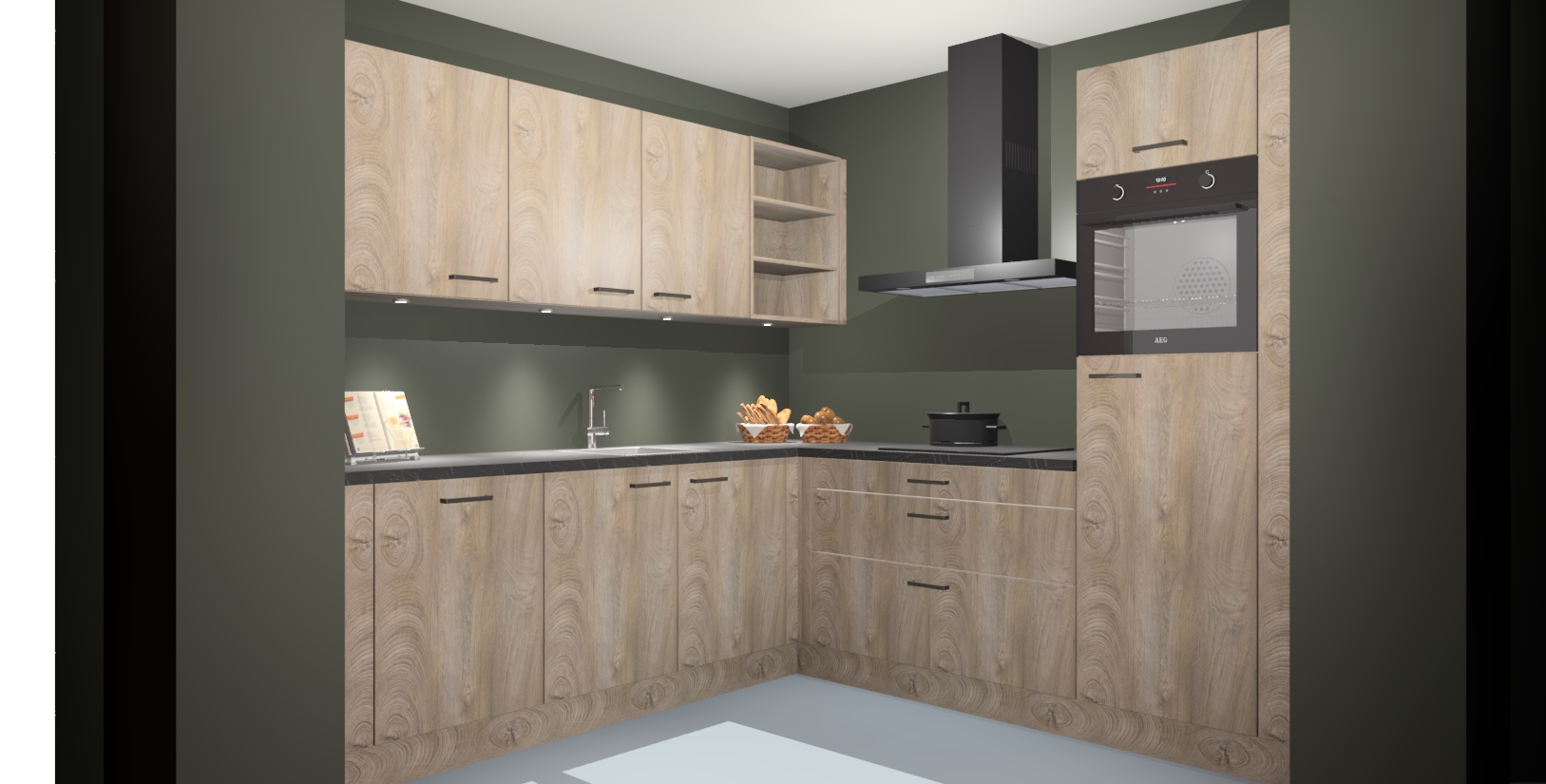 Met een modern, tijdloos design en ruime opslagruimte, zult u zich in no-time thuis voelen in uw nieuwe keuken. Uw leven wordt eenvoudiger met de soft-close deuren die voor het ultieme stille comfort zorgen - geen geluid dat u stoort terwijl u kookt. Ook is de keuken voorzien van 5 ingebouwde apparaten: een oven, inductie kookplaat, afzuigkap, vaatwasser en koelkast. Deze kunnen gemakkelijk na bestelling worden bijgewerkt naar AEG - waardoor uw luxe ervaring compleet is.