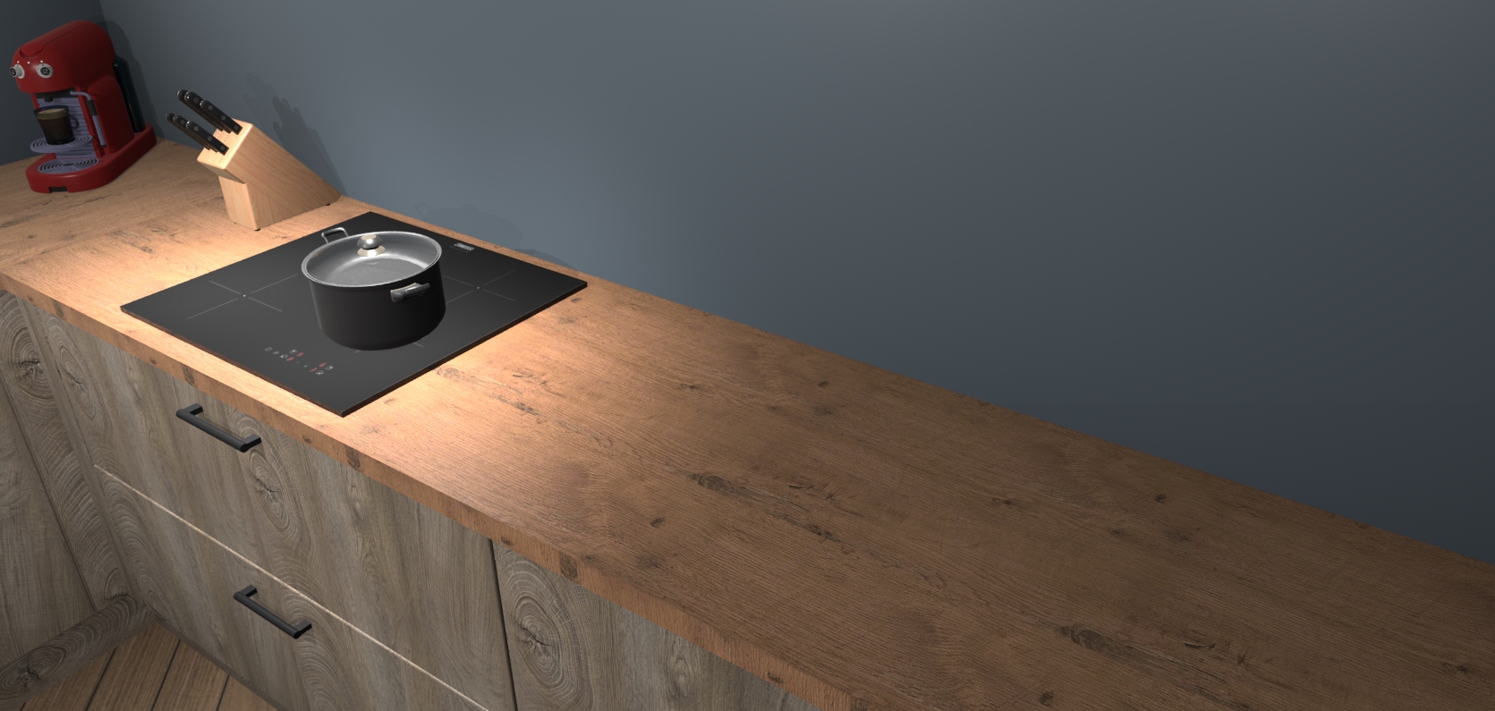 - Bij een hoekwerkblad zijn de hoeken in gevreesd en op maat gemaakt