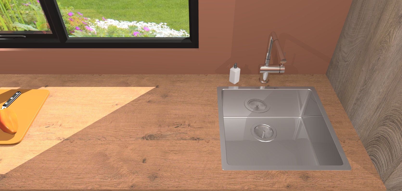 - De spoelbak is nog niet in gevreesd. Dit dient tijdens het werk gedaan te worden