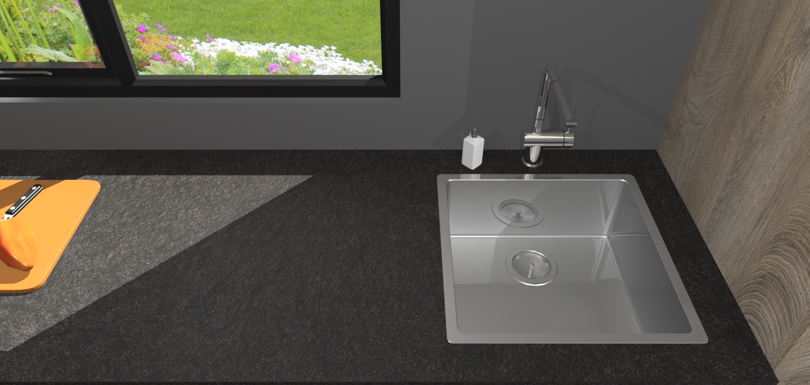 - De spoelbak is nog niet in gevreesd. Dit dient tijdens het werk gedaan te worden