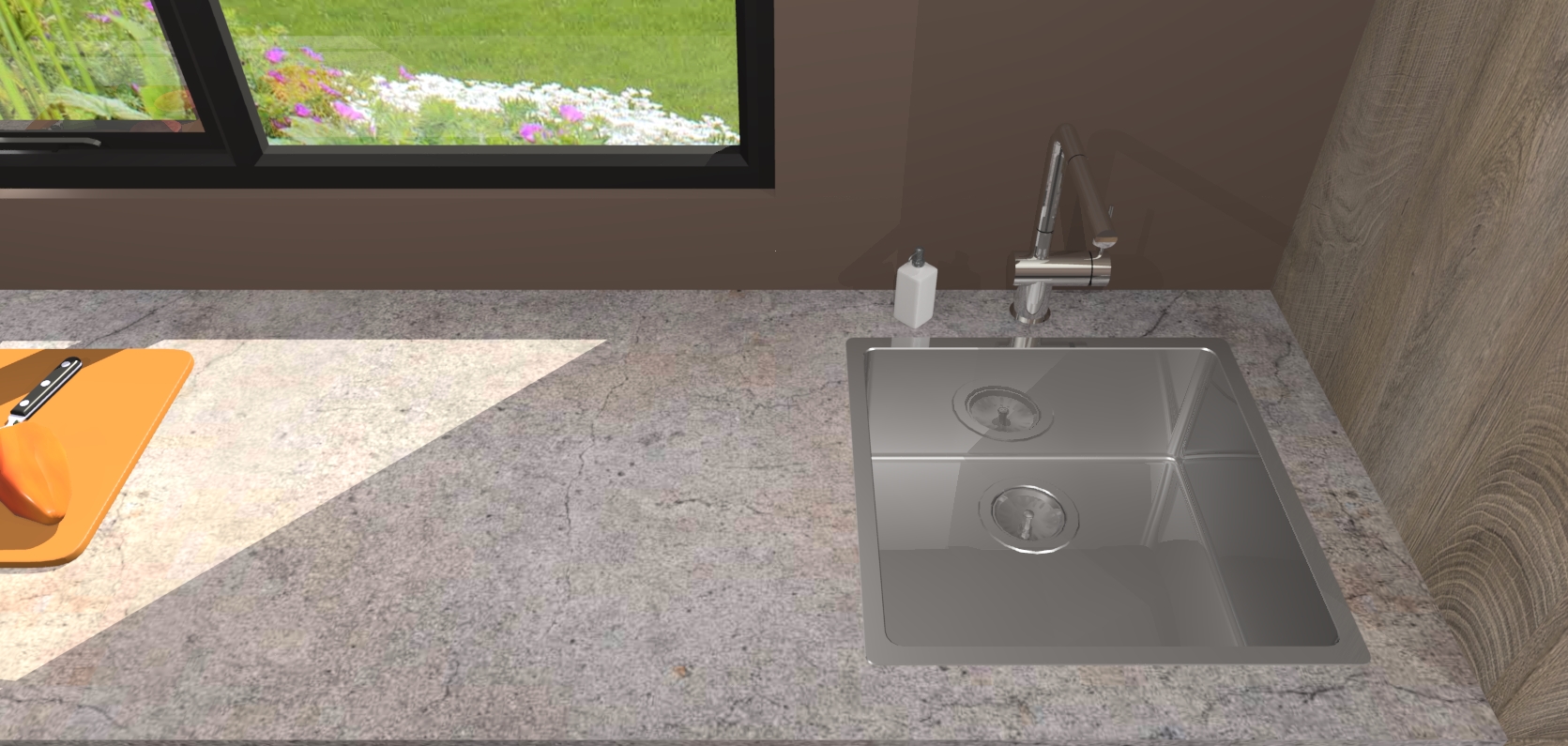 - De spoelbak is nog niet in gevreesd. Dit dient tijdens het werk gedaan te worden