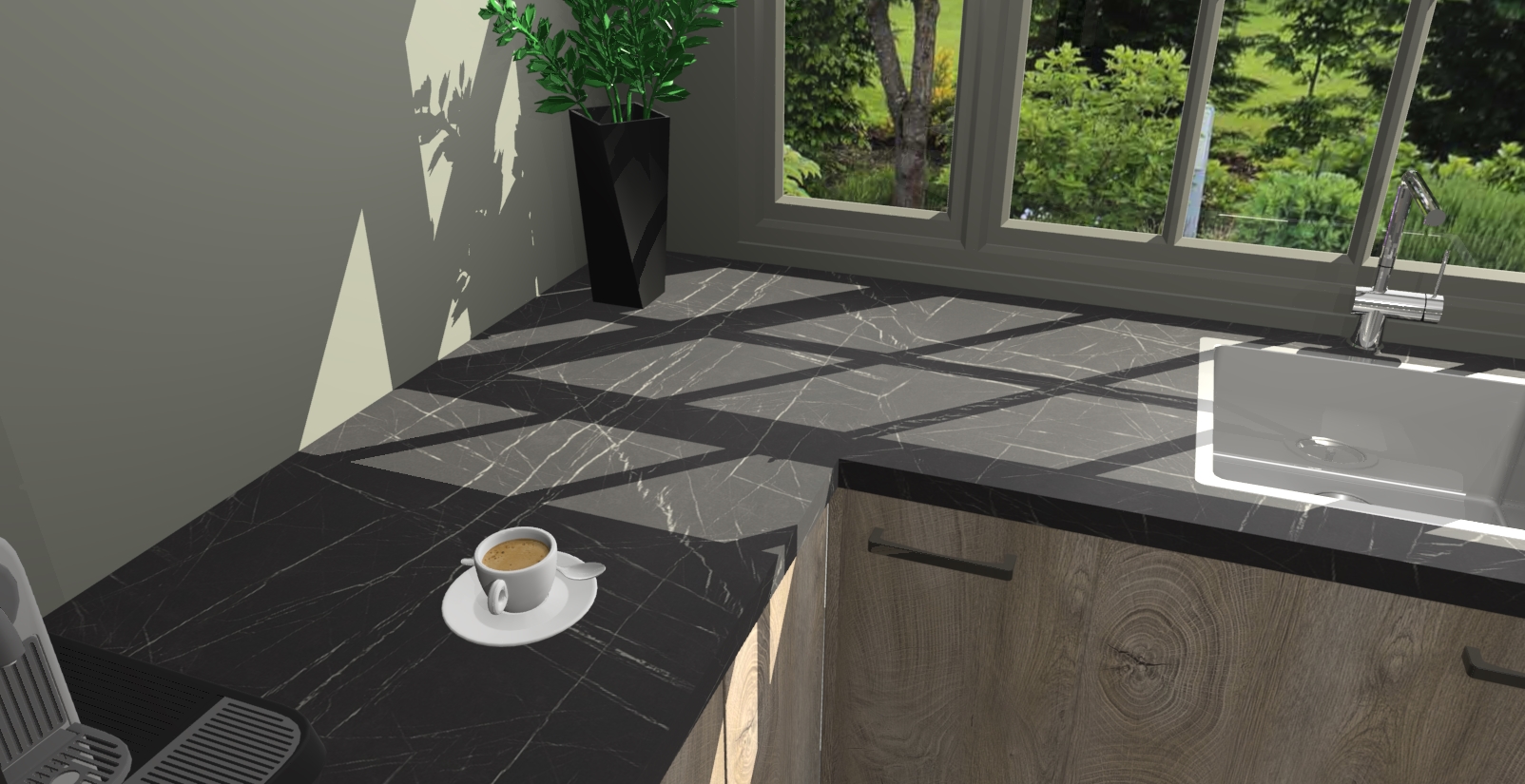 - Bij een hoekwerkblad zijn de hoeken in gevreesd en op maat gemaakt