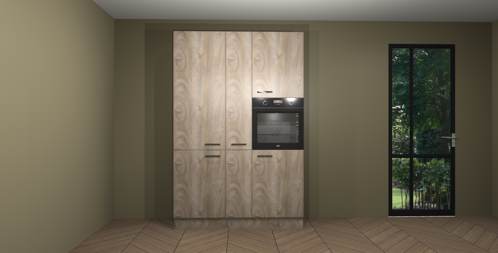 Met een modern, tijdloos design en ruime opslagruimte, zult u zich in no-time thuis voelen in uw nieuwe keuken. Uw leven wordt eenvoudiger met de soft-close deuren die voor het ultieme stille comfort zorgen - geen geluid dat u stoort terwijl u kookt. Ook is de keuken voorzien van 5 ingebouwde apparaten: een oven, inductie kookplaat, afzuigkap, vaatwasser en koelkast. Deze kunnen gemakkelijk na bestelling worden bijgewerkt naar AEG - waardoor uw luxe ervaring compleet is.