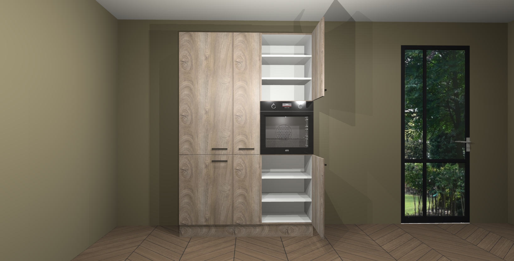 Met een modern, tijdloos design en ruime opslagruimte, zult u zich in no-time thuis voelen in uw nieuwe keuken. Uw leven wordt eenvoudiger met de soft-close deuren die voor het ultieme stille comfort zorgen - geen geluid dat u stoort terwijl u kookt. Ook is de keuken voorzien van 5 ingebouwde apparaten: een oven, inductie kookplaat, afzuigkap, vaatwasser en koelkast. Deze kunnen gemakkelijk na bestelling worden bijgewerkt naar AEG - waardoor uw luxe ervaring compleet is.