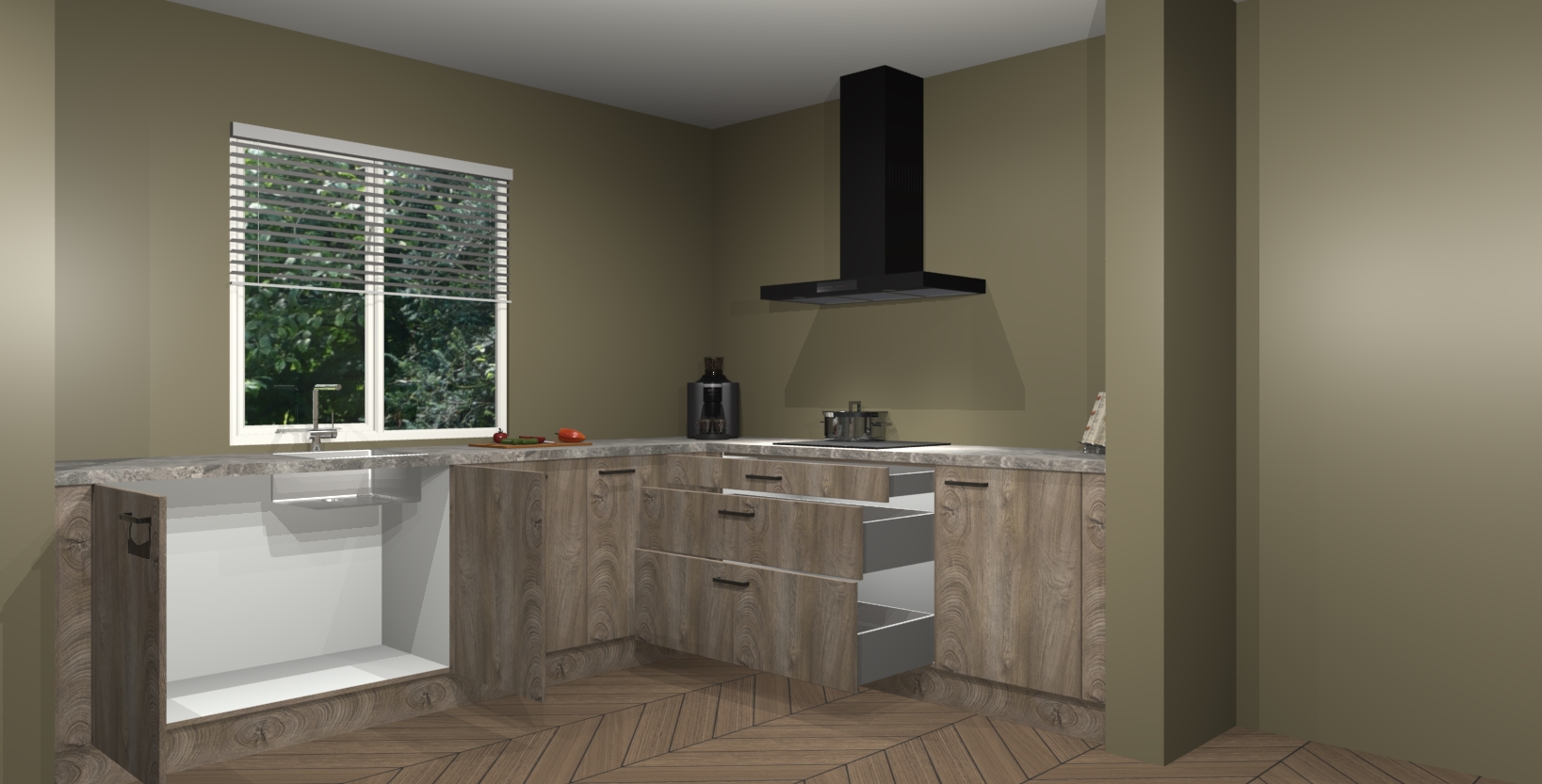 - Bij een hoekwerkblad zijn de hoeken in gevreesd en op maat gemaakt