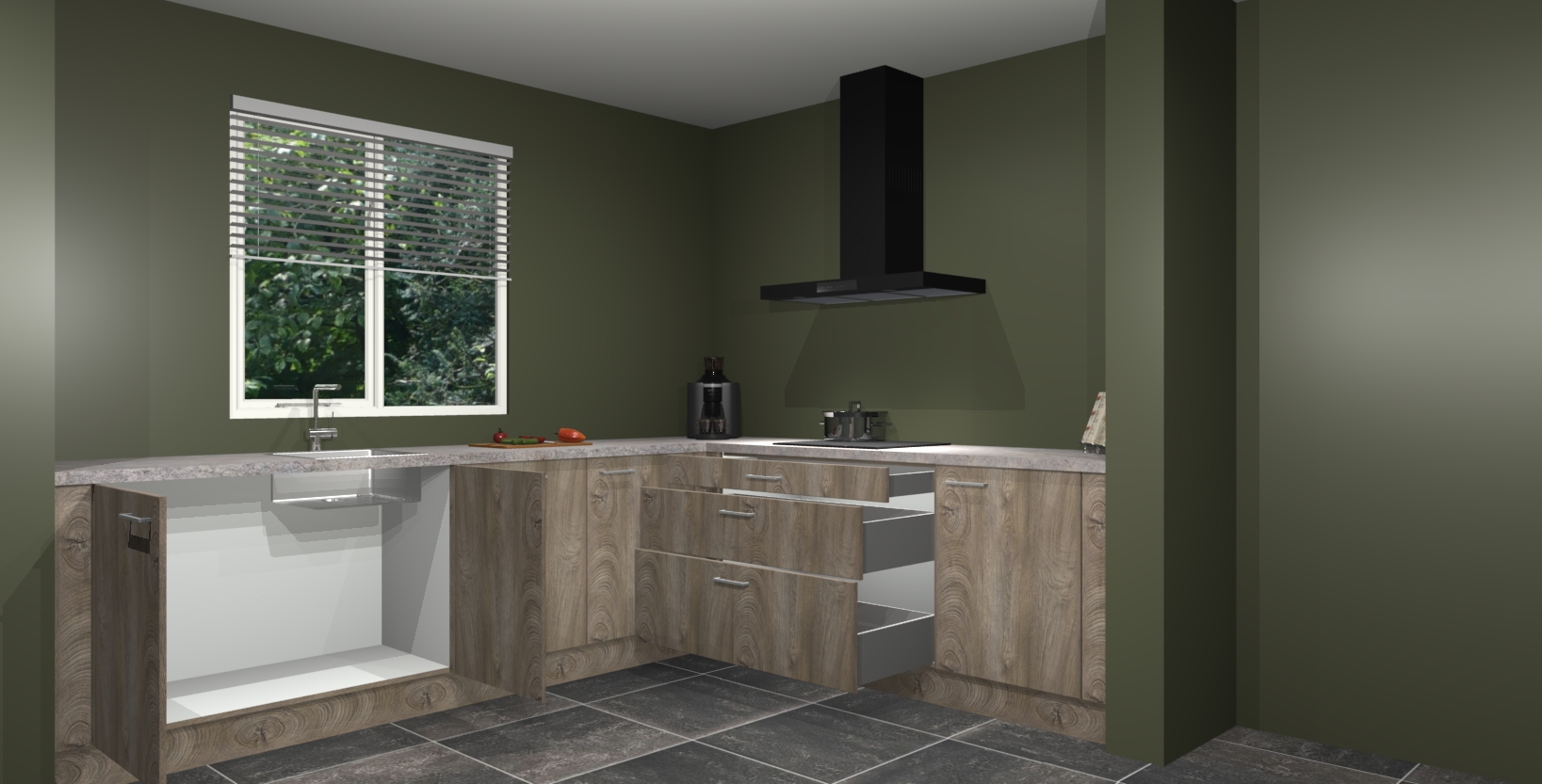 - Bij een hoekwerkblad zijn de hoeken in gevreesd en op maat gemaakt
