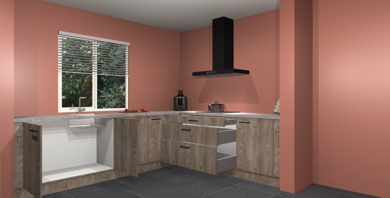 Inclusief plinten, stelpoten en werkblad