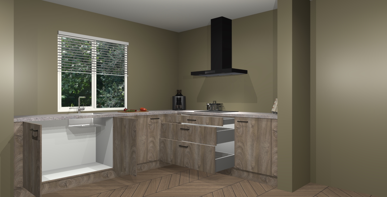 • Bij een hoekwerkblad zijn de hoeken in gevreesd en op maat gemaakt