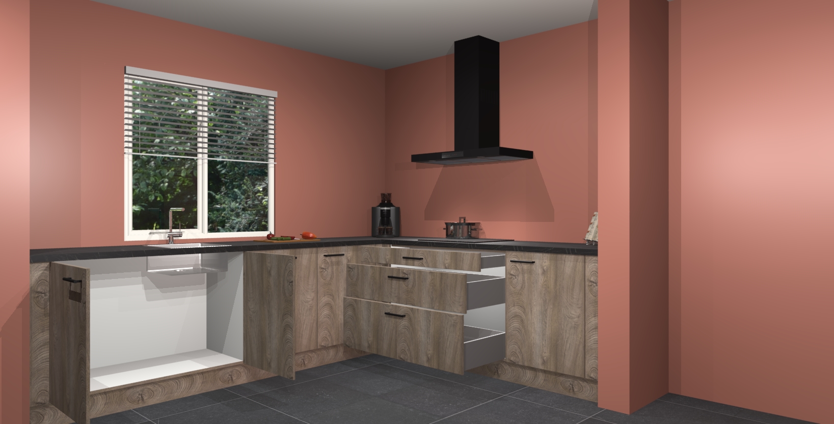 - Bij een hoekwerkblad zijn de hoeken in gevreesd en op maat gemaakt