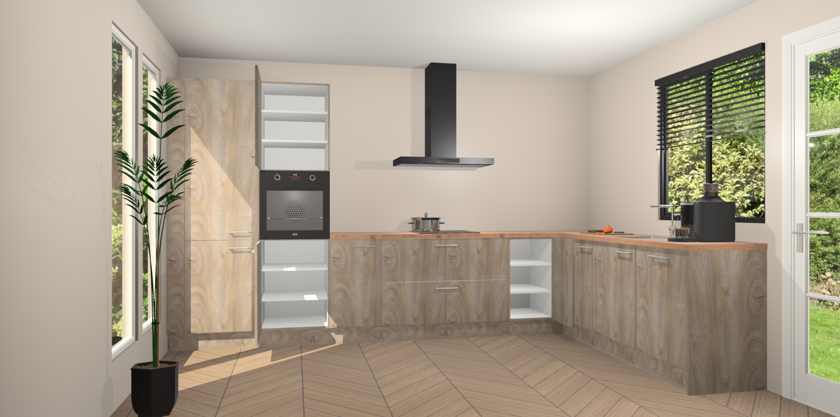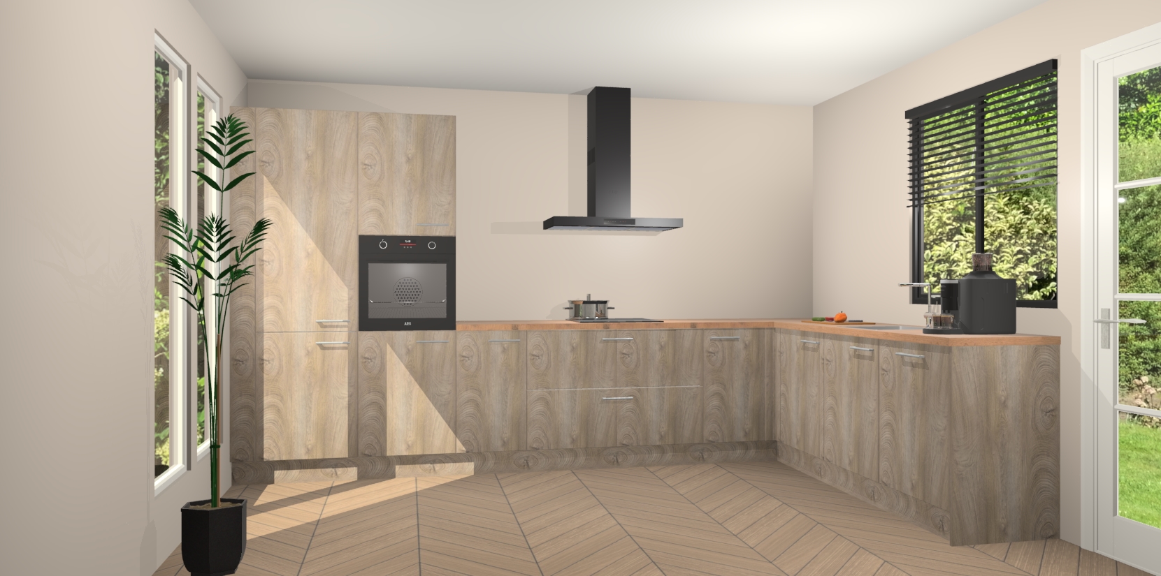 Inclusief plinten, stelpoten en werkblad