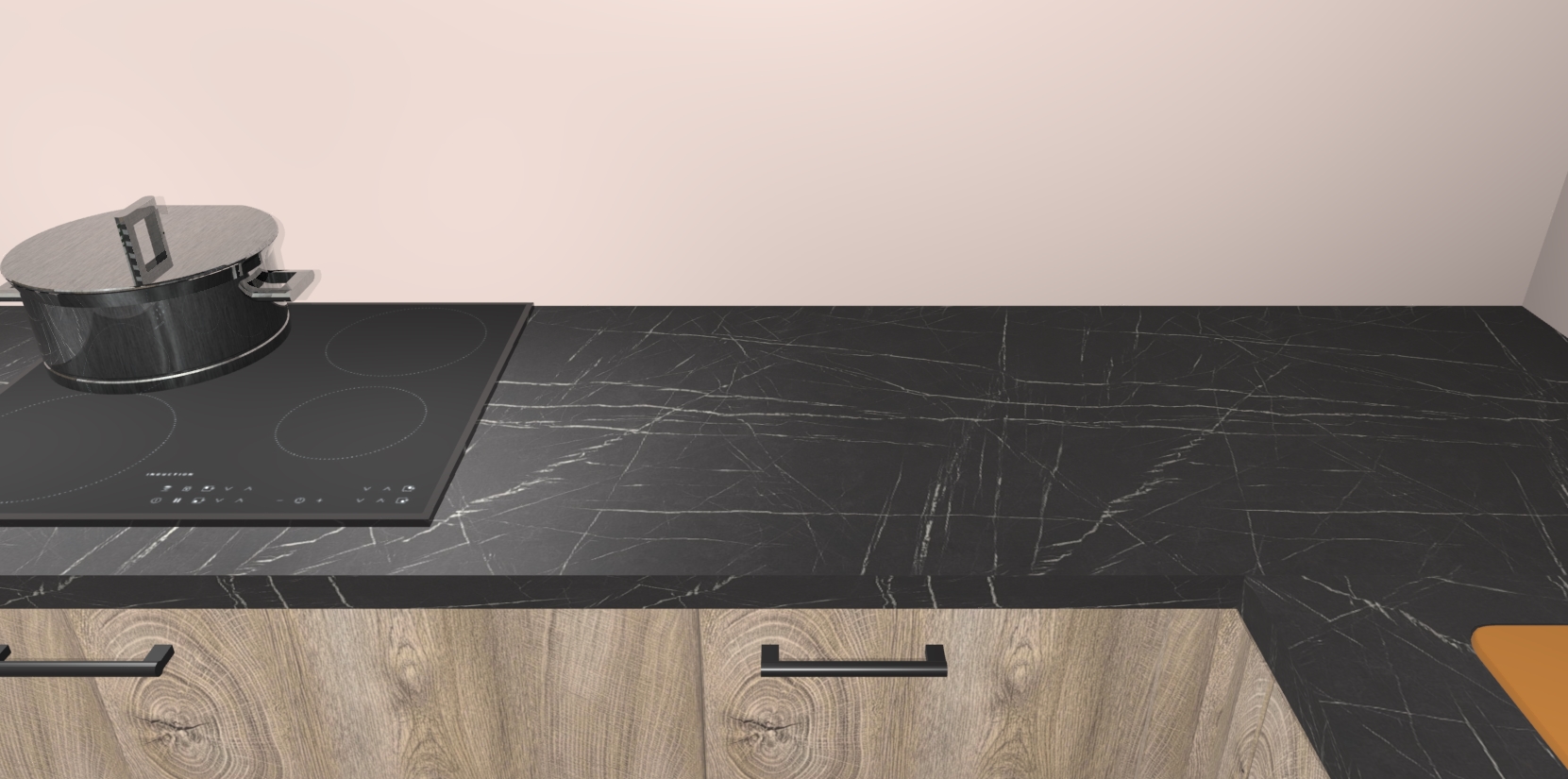 - Bij een hoekwerkblad zijn de hoeken in gevreesd en op maat gemaakt