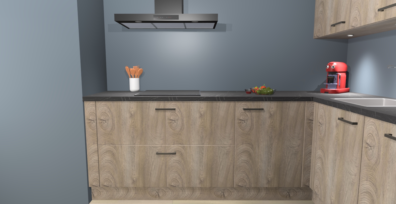 In deze box zijn alle kleuren verzameld van de deuren en werkbladen. Vraag de gratis kleurenbox aan en kijk thuis rustig verder!