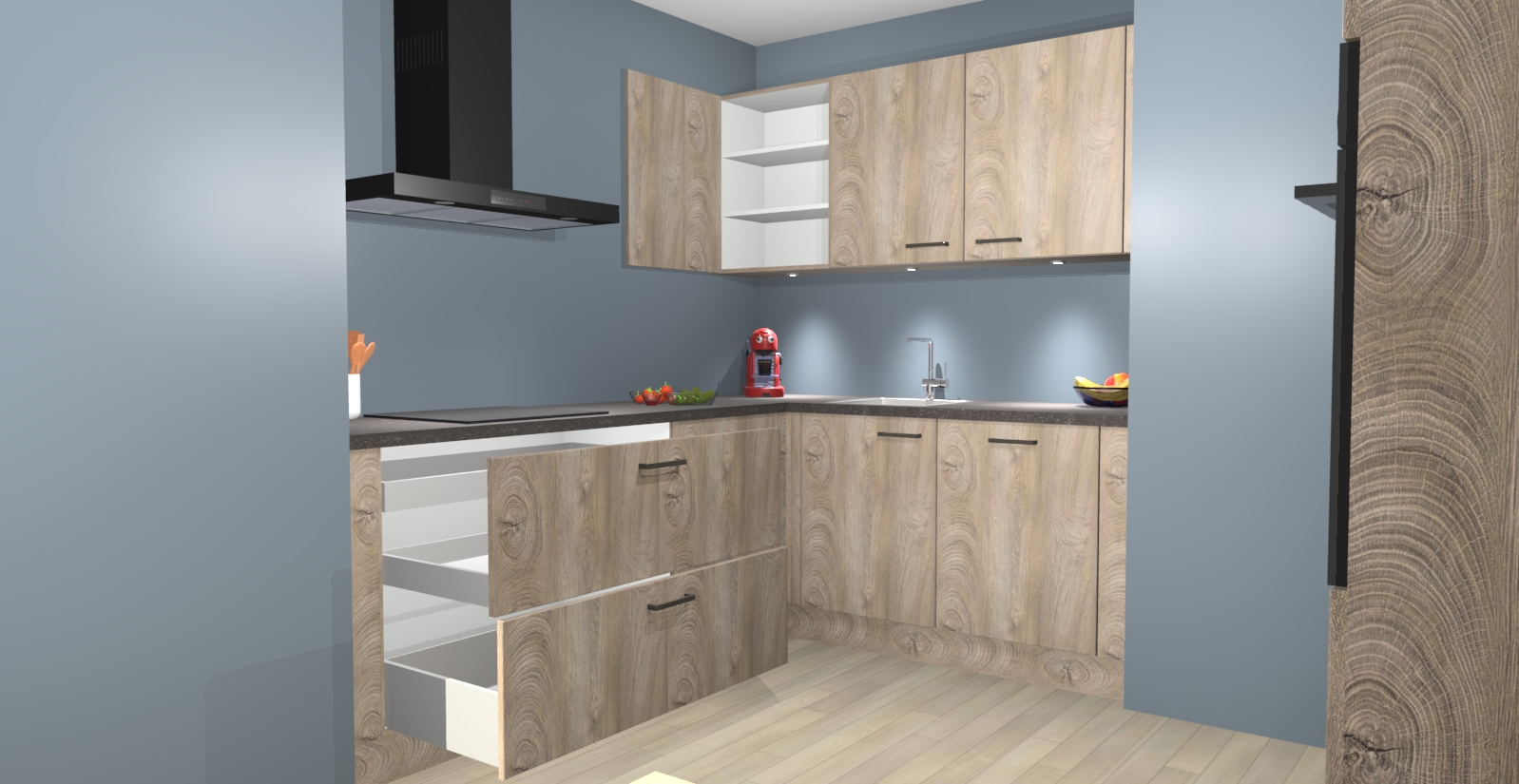 In deze box zijn alle kleuren verzameld van de deuren en werkbladen. Vraag de gratis kleurenbox aan en kijk thuis rustig verder!