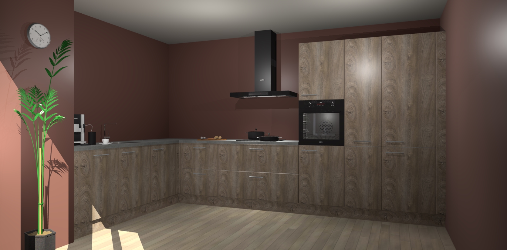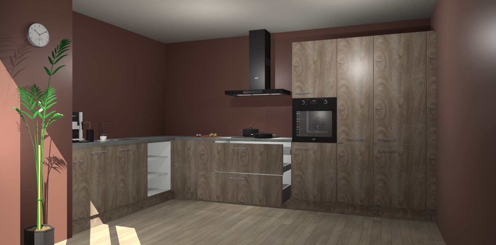 Welkom bij de cantaro eiken keuken Nuuk. Deze prachtige keuken zal de komende jaren het middelpunt van de belangstelling in uw huis zijn. Uitgerust met vijf inbouwapparaten komt u nooit kookgereedschap tekort.
