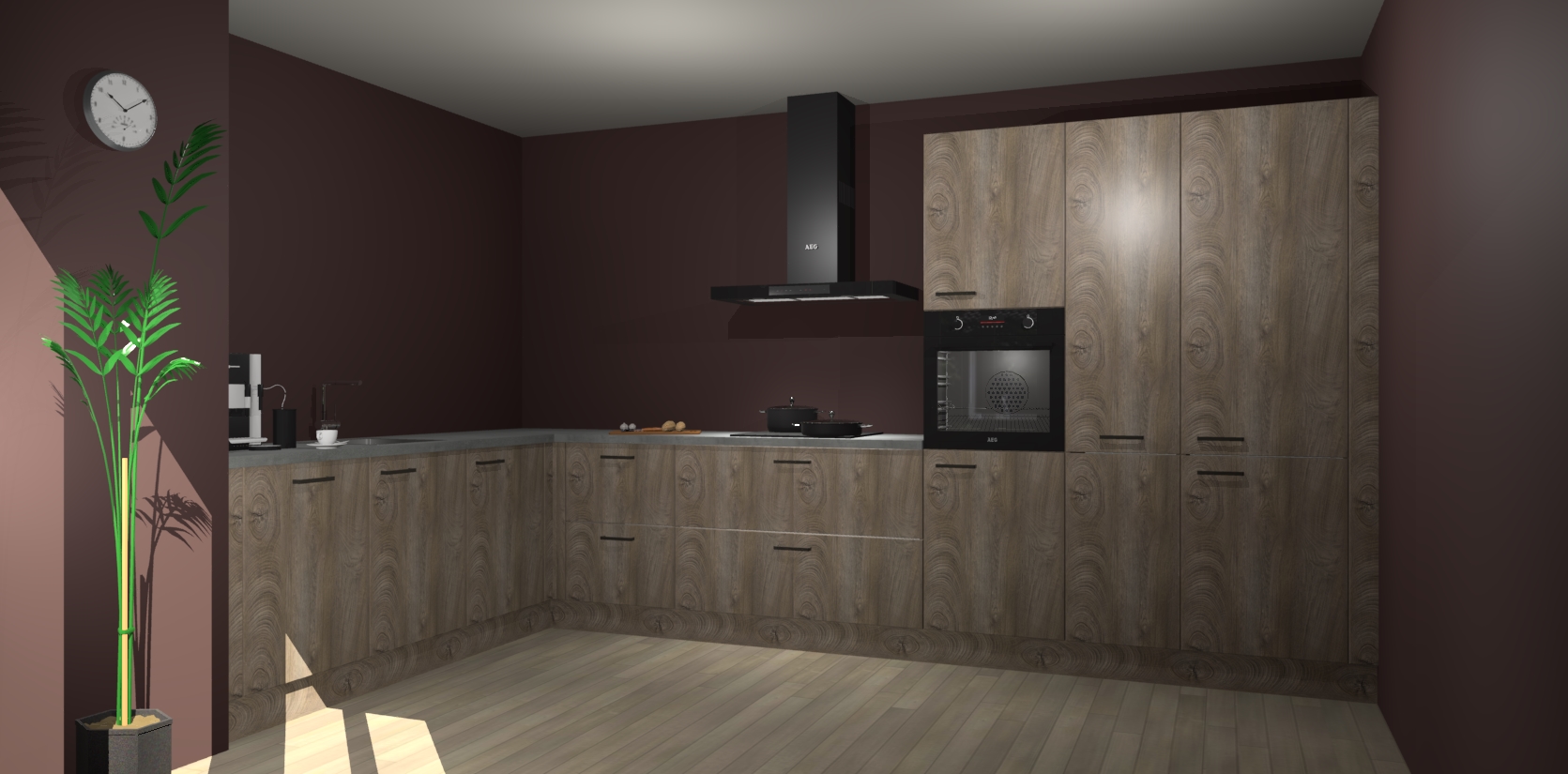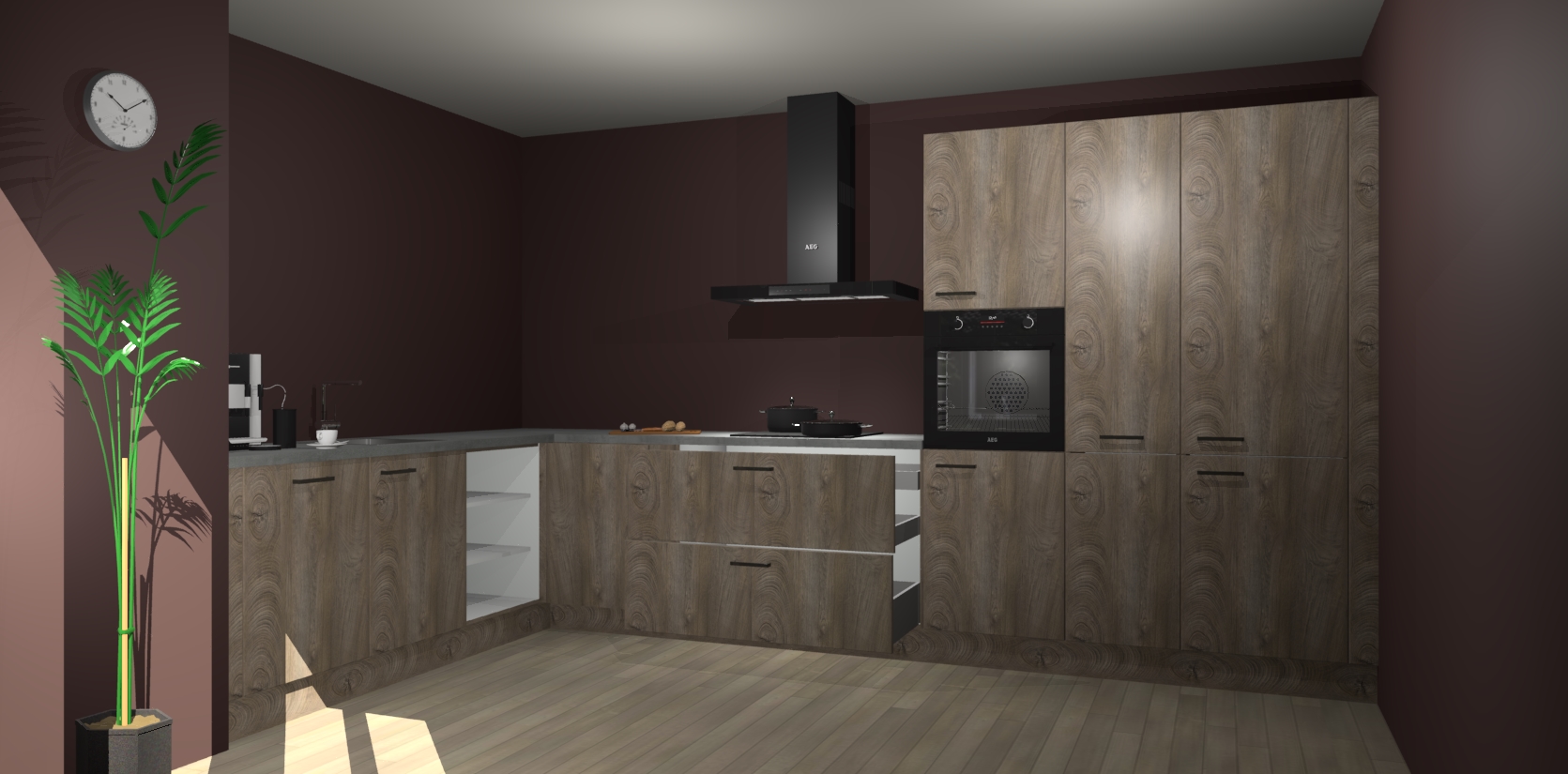 Welkom bij de cantaro eiken keuken Nuuk. Deze prachtige keuken zal de komende jaren het middelpunt van de belangstelling in uw huis zijn. Uitgerust met vijf inbouwapparaten komt u nooit kookgereedschap tekort.