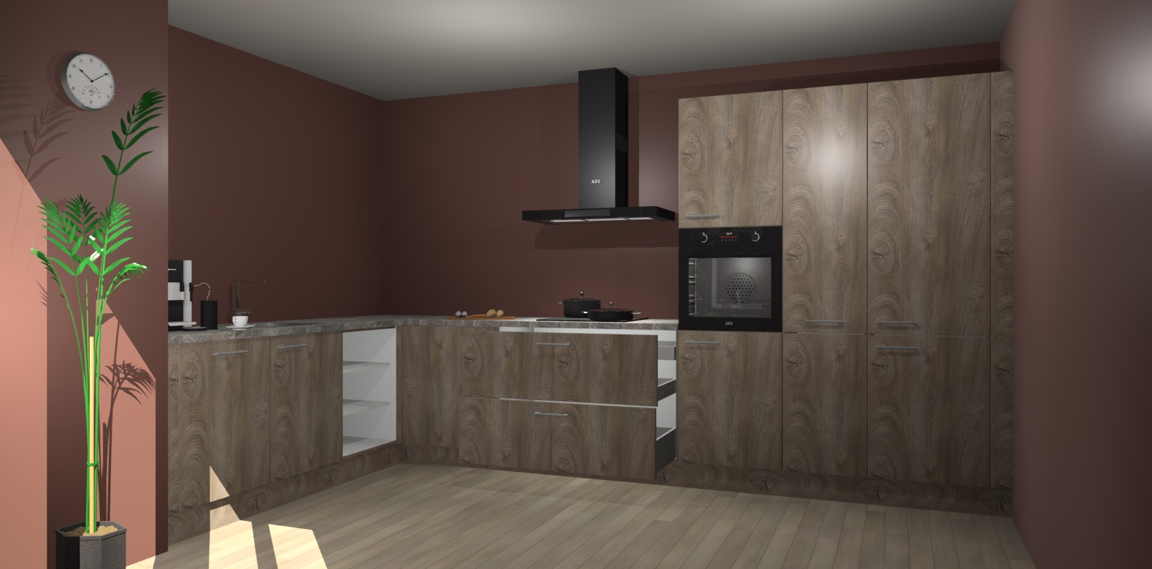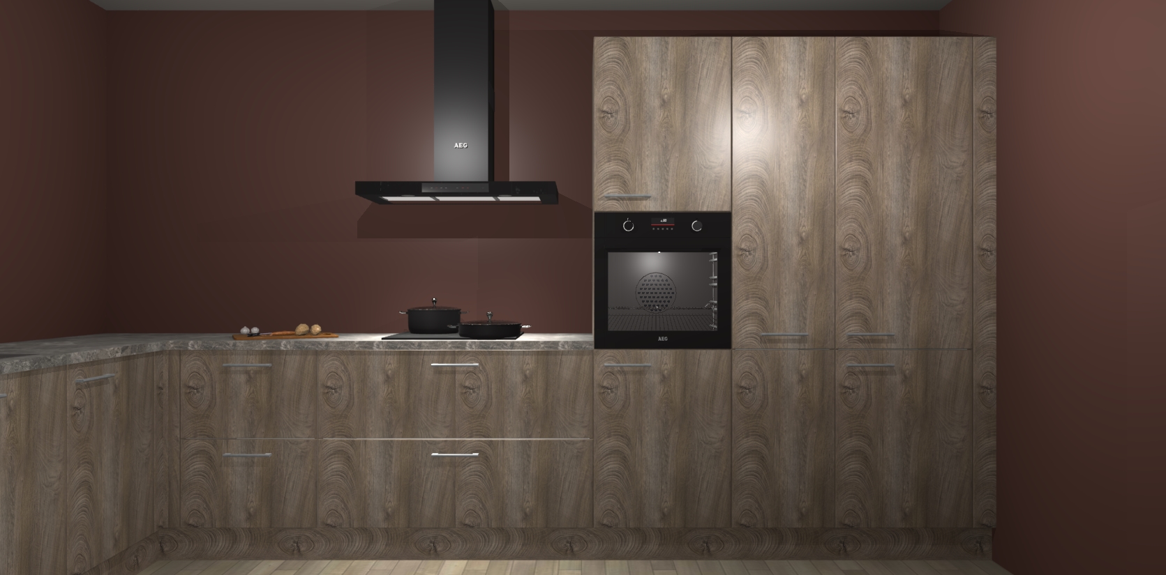 Welkom bij de cantaro eiken keuken Nuuk. Deze prachtige keuken zal de komende jaren het middelpunt van de belangstelling in uw huis zijn. Uitgerust met vijf inbouwapparaten komt u nooit kookgereedschap tekort.