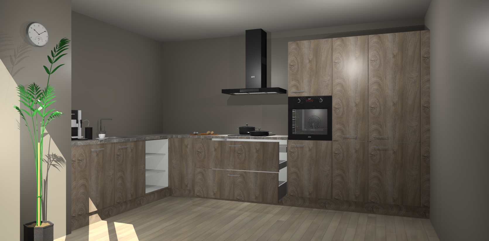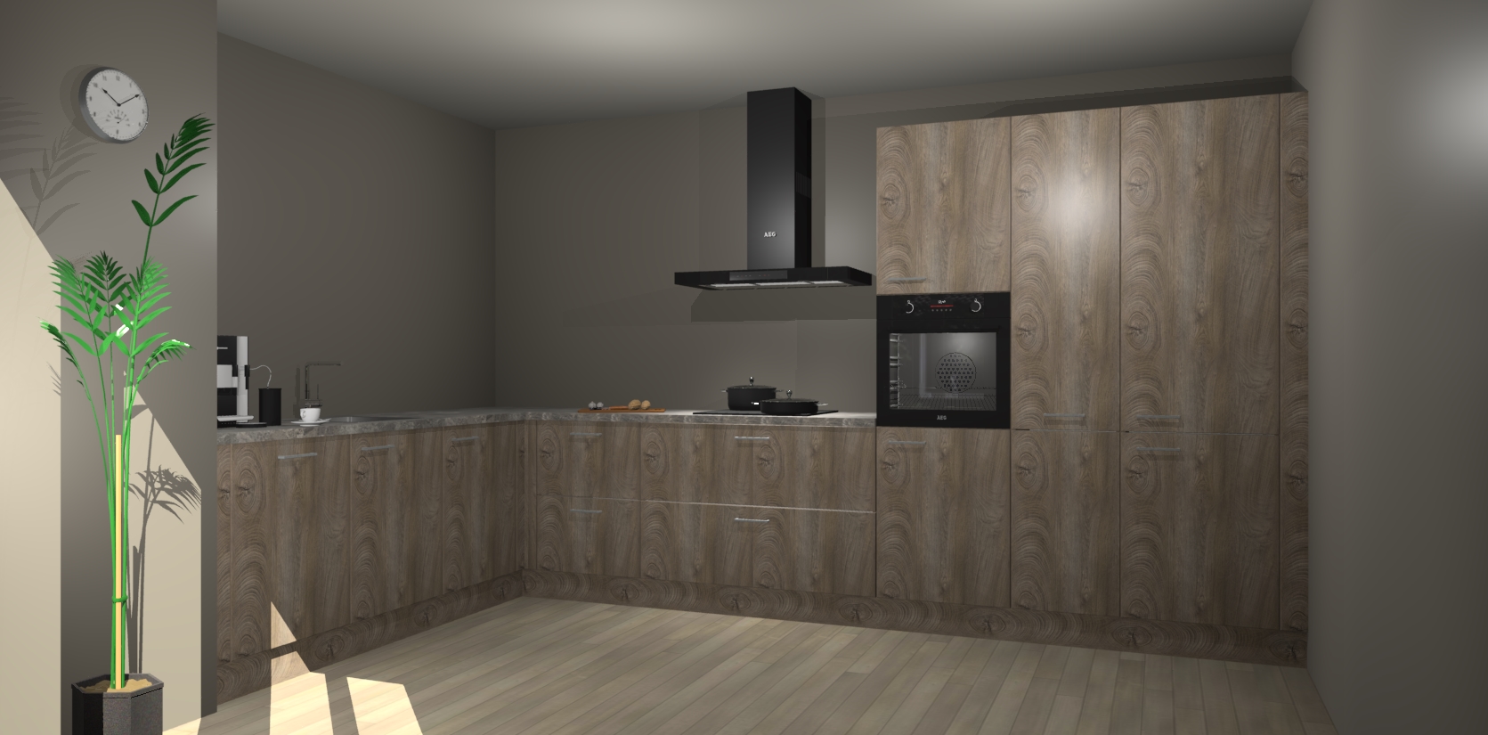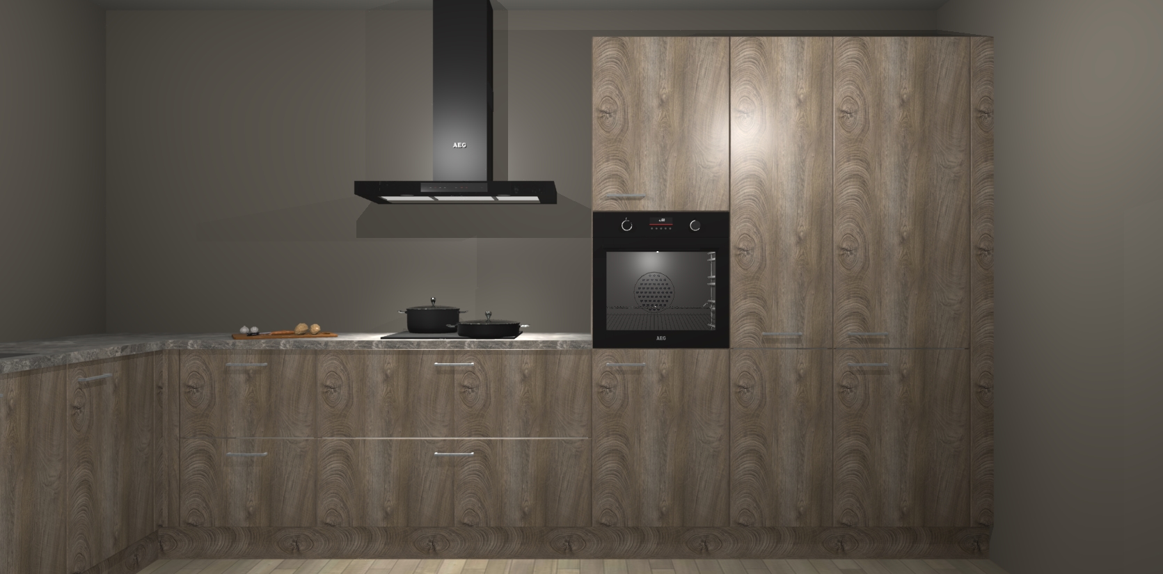 Welkom bij de cantaro eiken keuken Nuuk. Deze prachtige keuken zal de komende jaren het middelpunt van de belangstelling in uw huis zijn. Uitgerust met vijf inbouwapparaten komt u nooit kookgereedschap tekort.