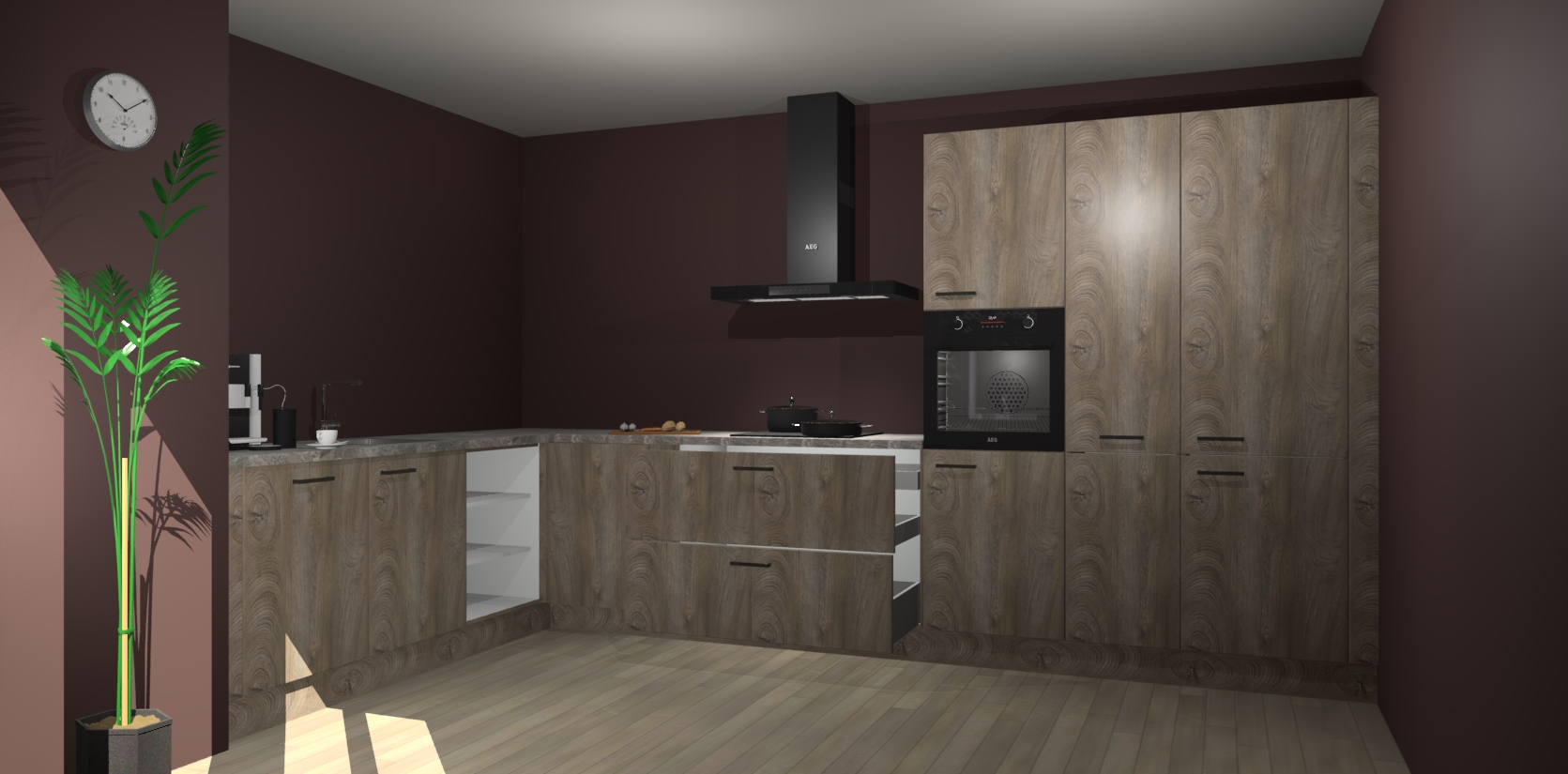 Welkom bij de cantaro eiken keuken Nuuk. Deze prachtige keuken zal de komende jaren het middelpunt van de belangstelling in uw huis zijn. Uitgerust met vijf inbouwapparaten komt u nooit kookgereedschap tekort.