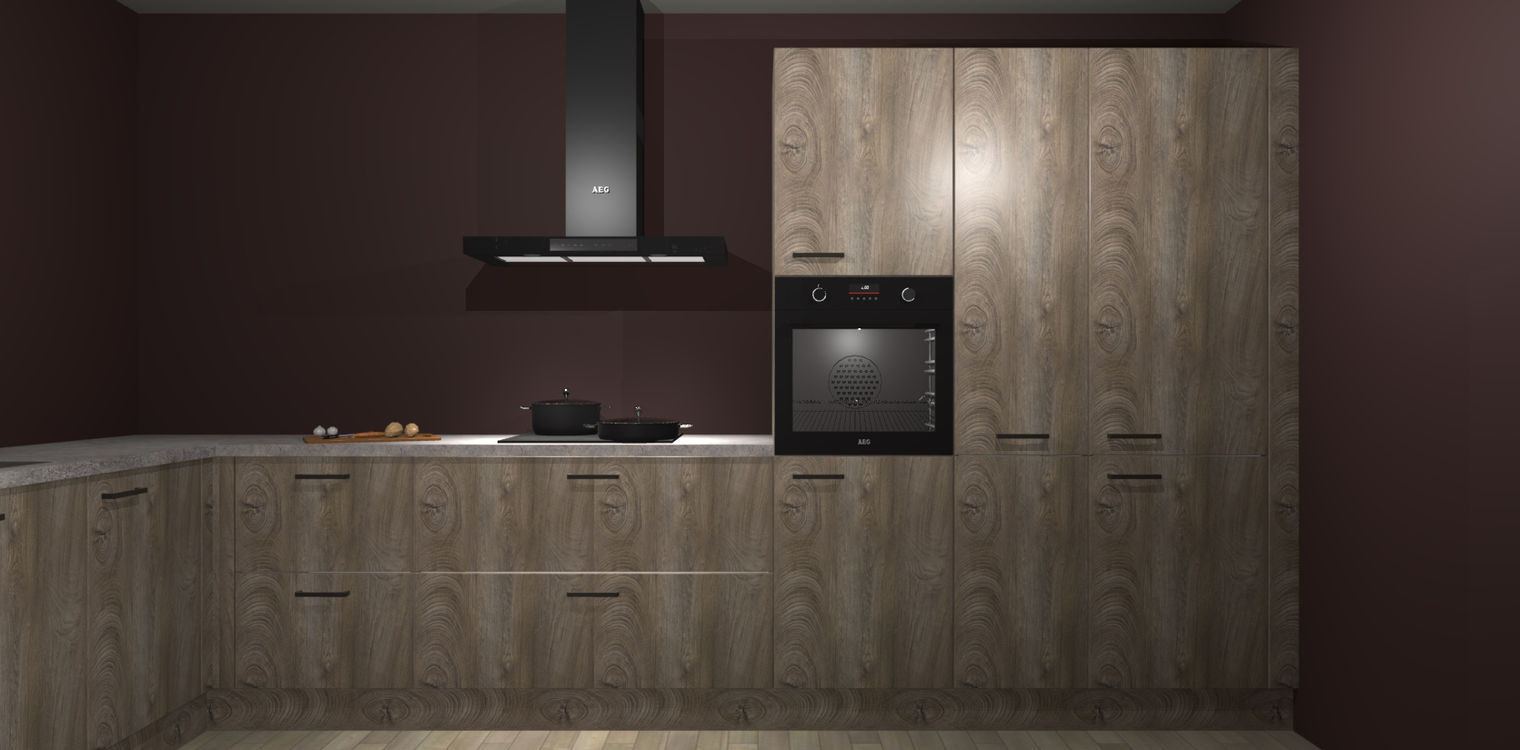 Welkom bij de cantaro eiken keuken Nuuk. Deze prachtige keuken zal de komende jaren het middelpunt van de belangstelling in uw huis zijn. Uitgerust met vijf inbouwapparaten komt u nooit kookgereedschap tekort.