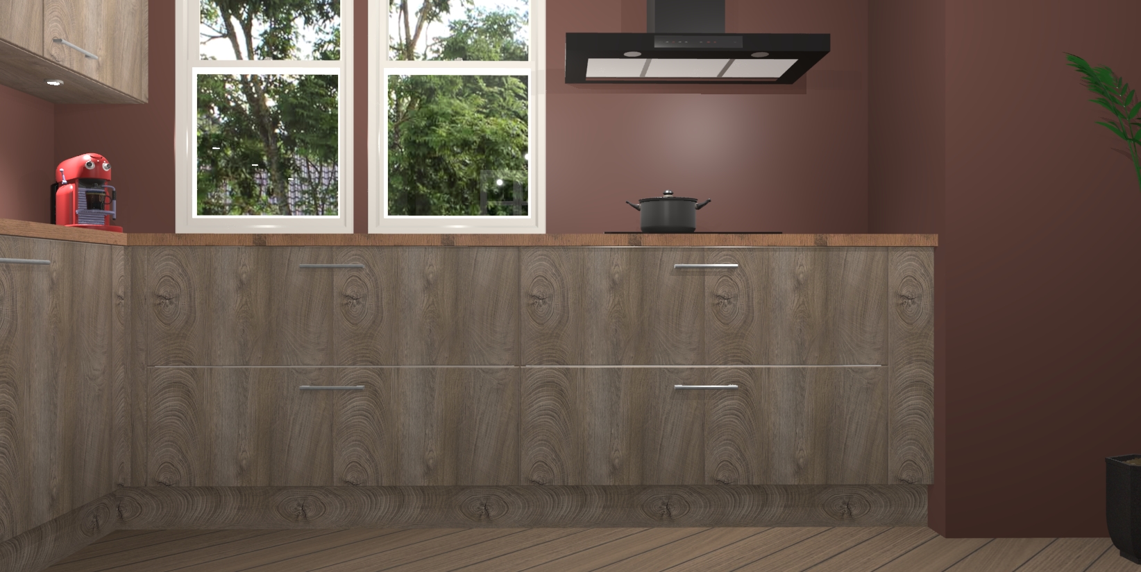 Inclusief plinten, stelpoten en werkblad