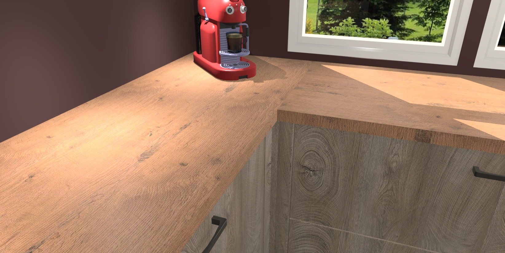 • Bij een hoekwerkblad zijn de hoeken in gevreesd en op maat gemaakt