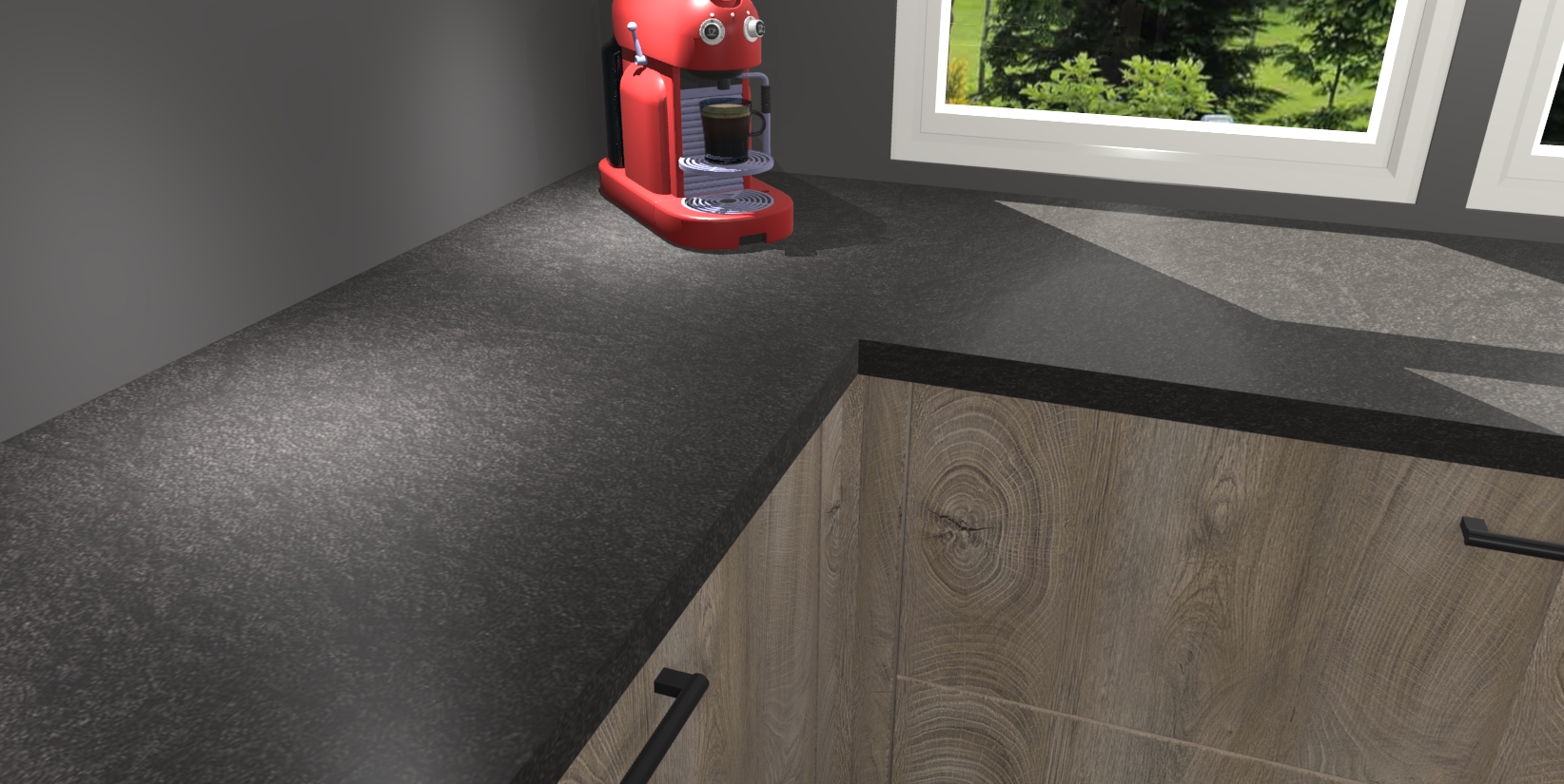 - Bij een hoekwerkblad zijn de hoeken in gevreesd en op maat gemaakt