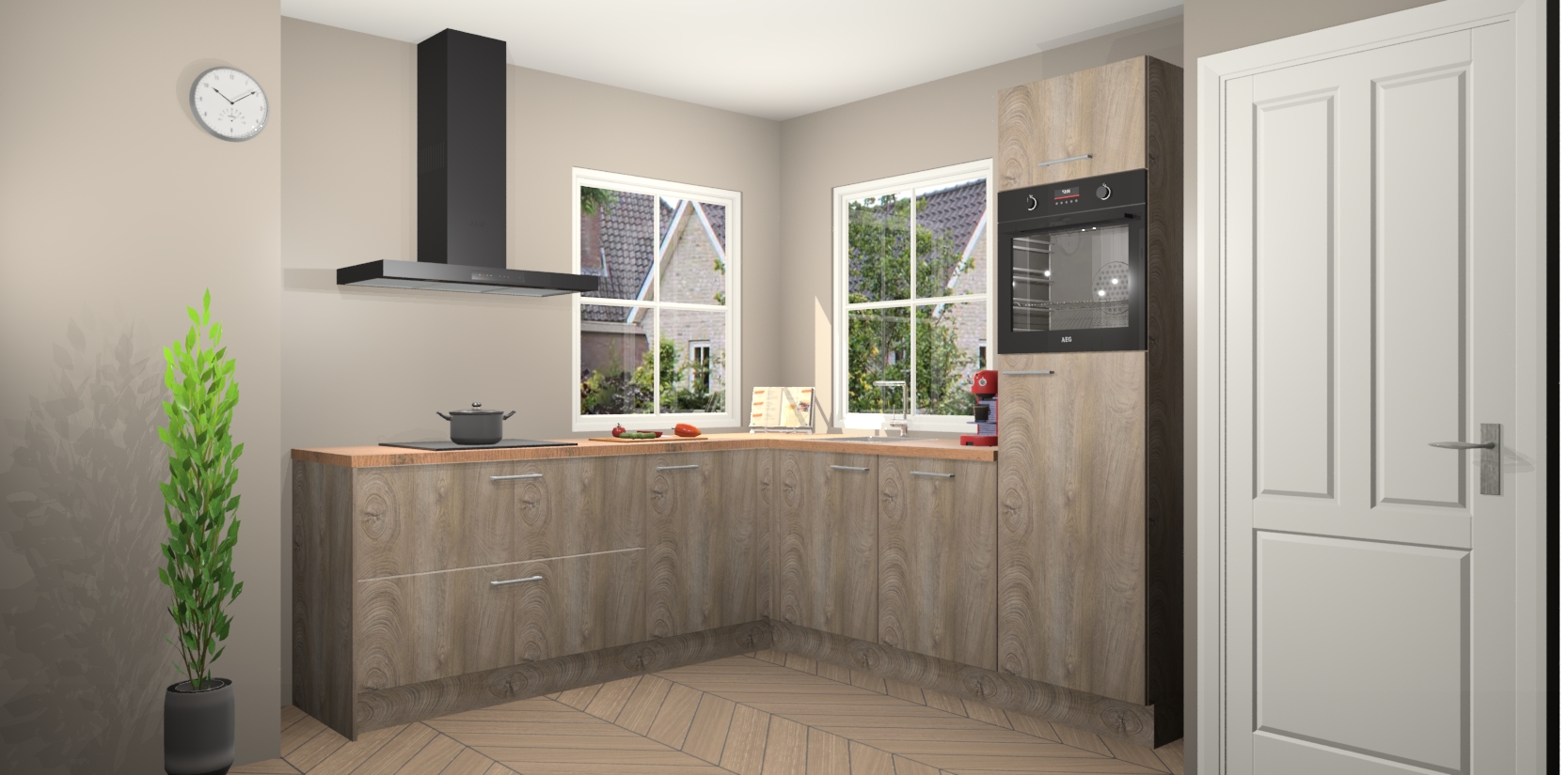 De Cantaro Eiken keuken Pai bevat vijf essentiële inbouwapparaten - een oven, inductiekookplaat, afzuigkap, vaatwasser en koelkast - zodat u er na levering meteen in kunt. Voor de slimme kopers die weten dat apparaten vaak het verschil kunnen maken tussen functioneel en luxueus, bieden we eenvoudige upgradeopties naar AEG, van oven naar combimagnetron na bestelling of naar een kookplaat met geïntrigeerde afzuiging. En met onze vaste lage prijs en snelle levering binnen zeven weken vanaf de orderbevestiging hoeft u zich geen zorgen te maken over verborgen kosten of lange levertijden die uw droomkeuken kunnen vertragen.