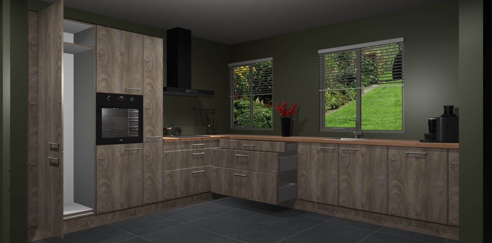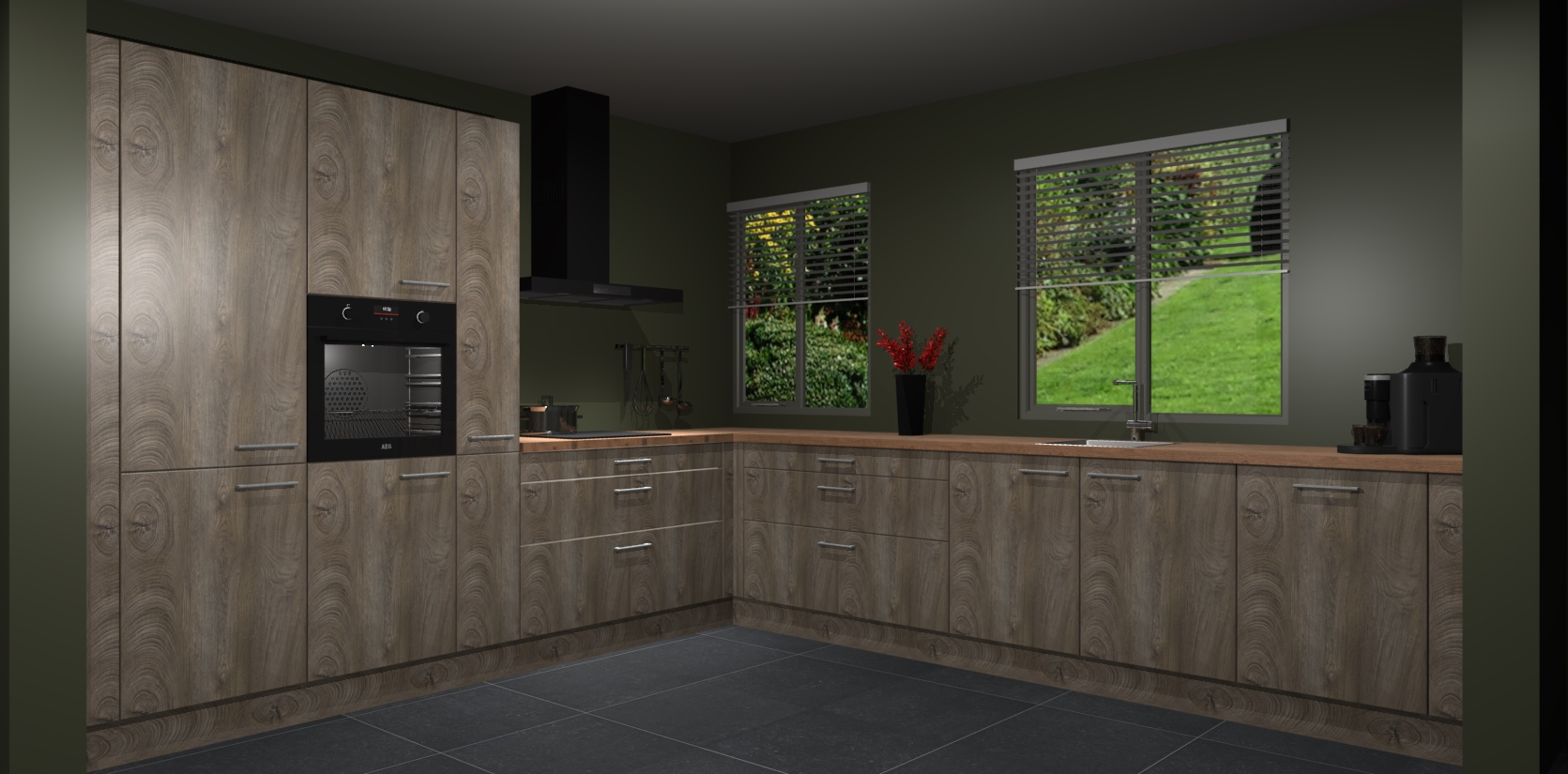 Welkom bij de Cantaro Eiken keuken Palermo. Deze prachtige keuken zal de komende jaren het middelpunt van de belangstelling in uw huis zijn. Uitgerust met vijf inbouwapparaten komt u nooit kookgereedschap tekort. Bovendien geeft de warme houtlook elke ruimte een uitnodigende en tijdloze uitstraling.