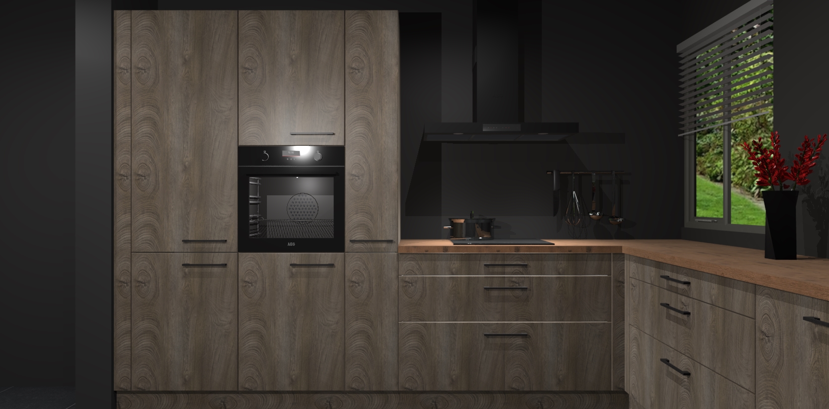 Welkom bij de Cantaro Eiken keuken Palermo. Deze prachtige keuken zal de komende jaren het middelpunt van de belangstelling in uw huis zijn. Uitgerust met vijf inbouwapparaten komt u nooit kookgereedschap tekort. Bovendien geeft de warme houtlook elke ruimte een uitnodigende en tijdloze uitstraling.