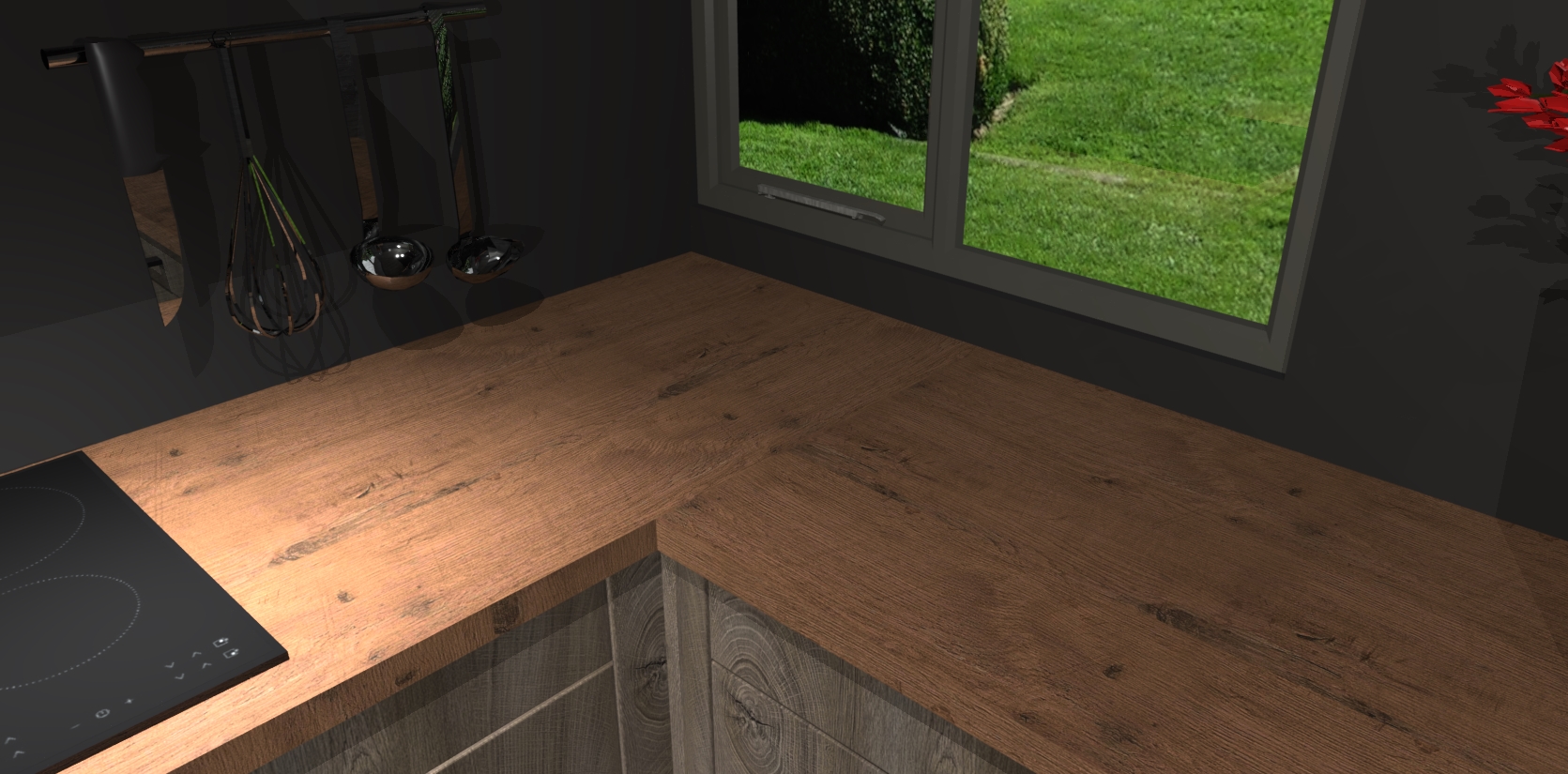 - Bij een hoekwerkblad zijn de hoeken in gevreesd en op maat gemaakt