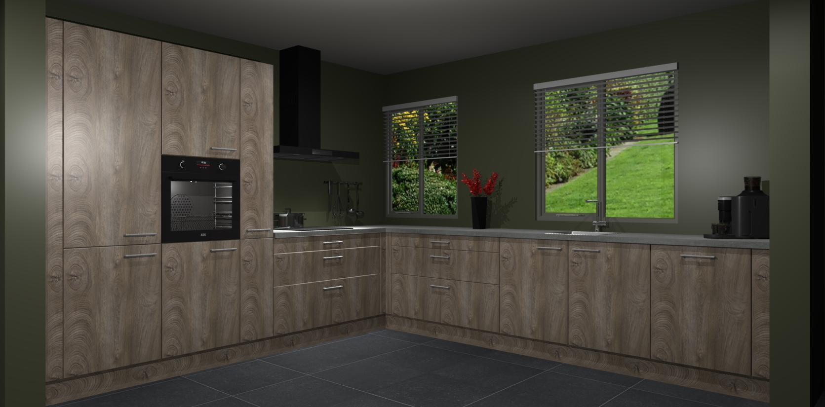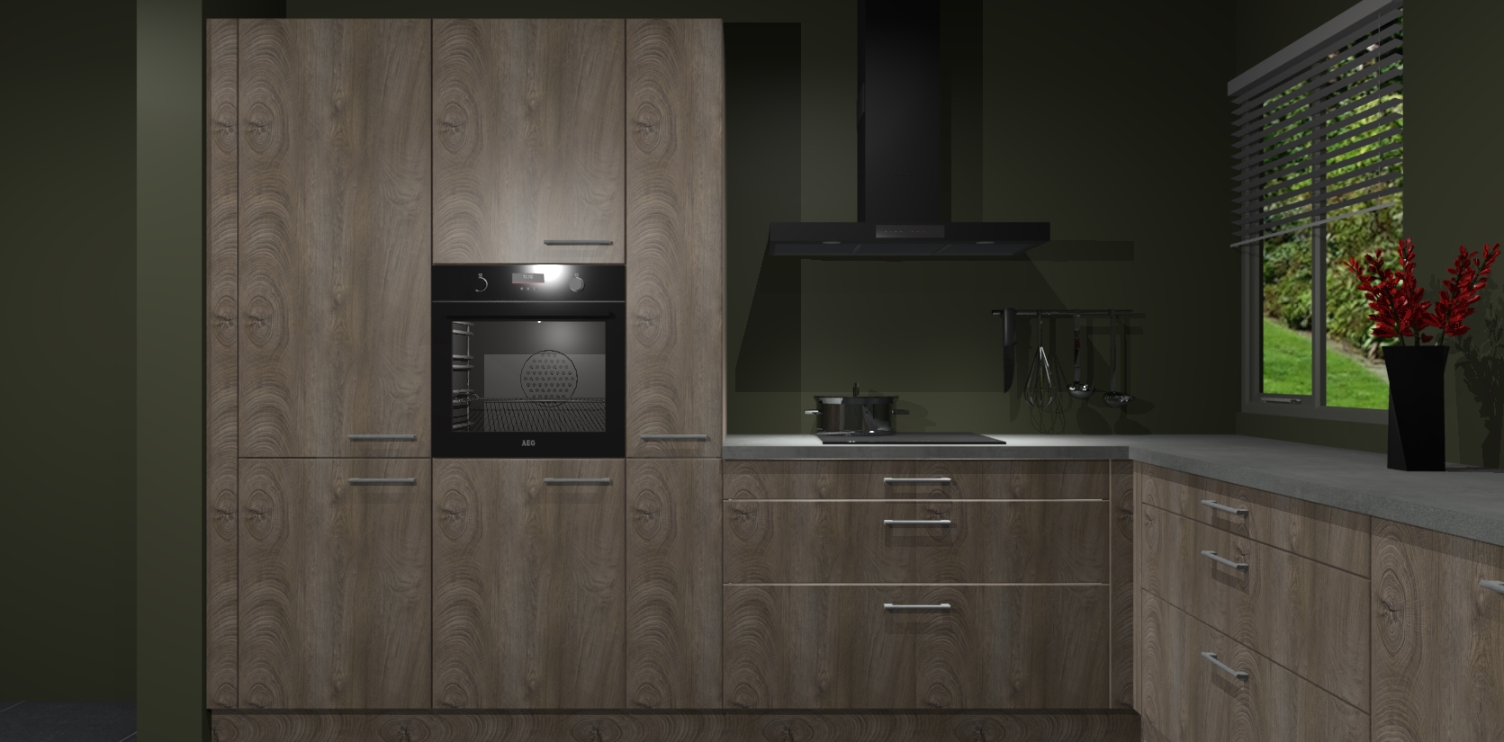 Welkom bij de Cantaro Eiken keuken Palermo. Deze prachtige keuken zal de komende jaren het middelpunt van de belangstelling in uw huis zijn. Uitgerust met vijf inbouwapparaten komt u nooit kookgereedschap tekort. Bovendien geeft de warme houtlook elke ruimte een uitnodigende en tijdloze uitstraling.