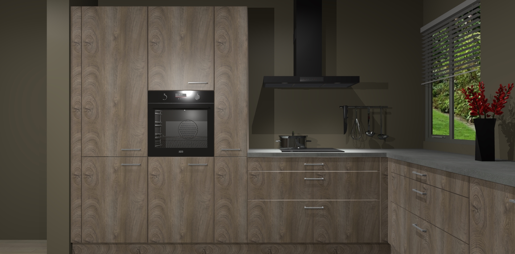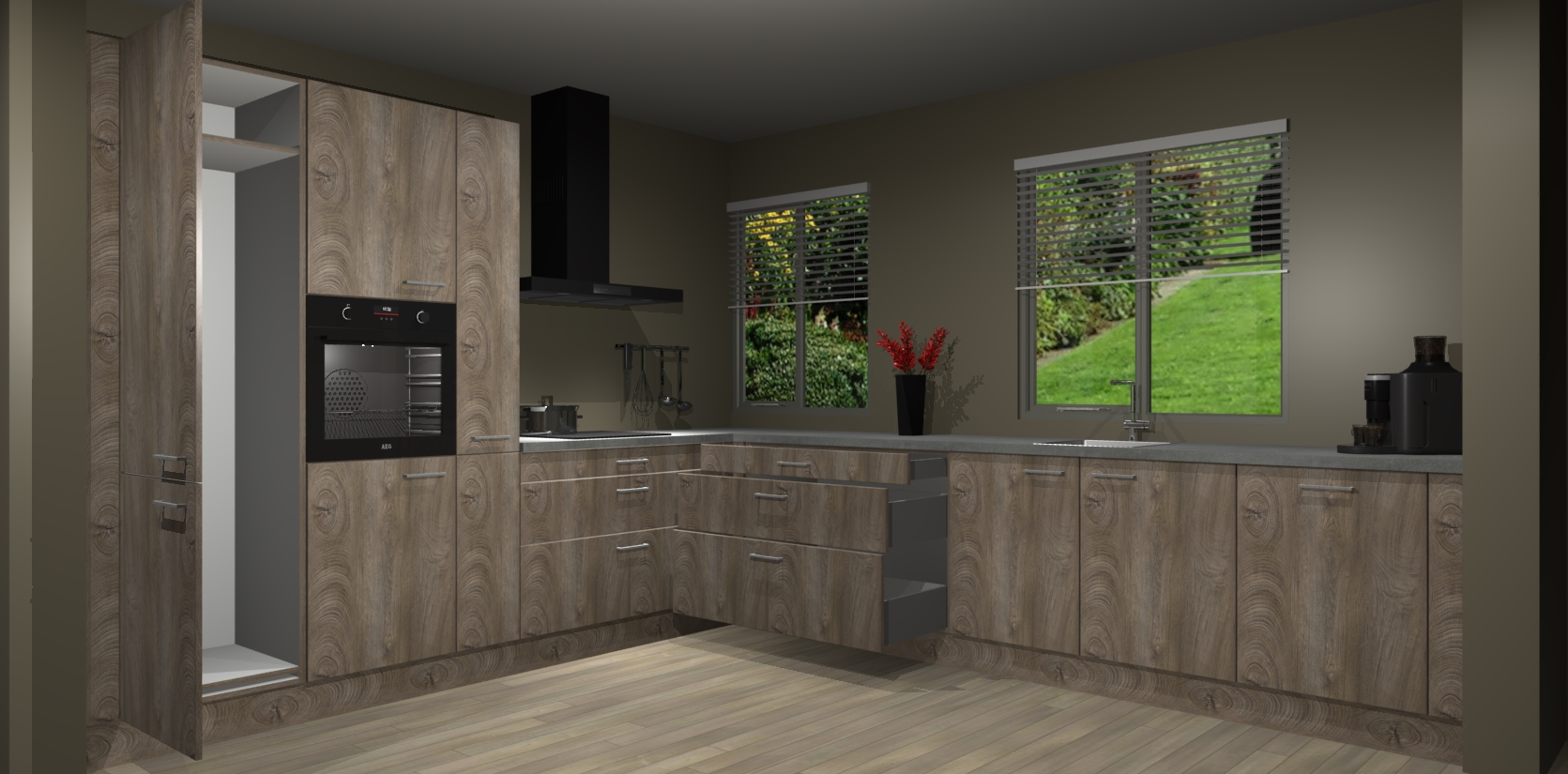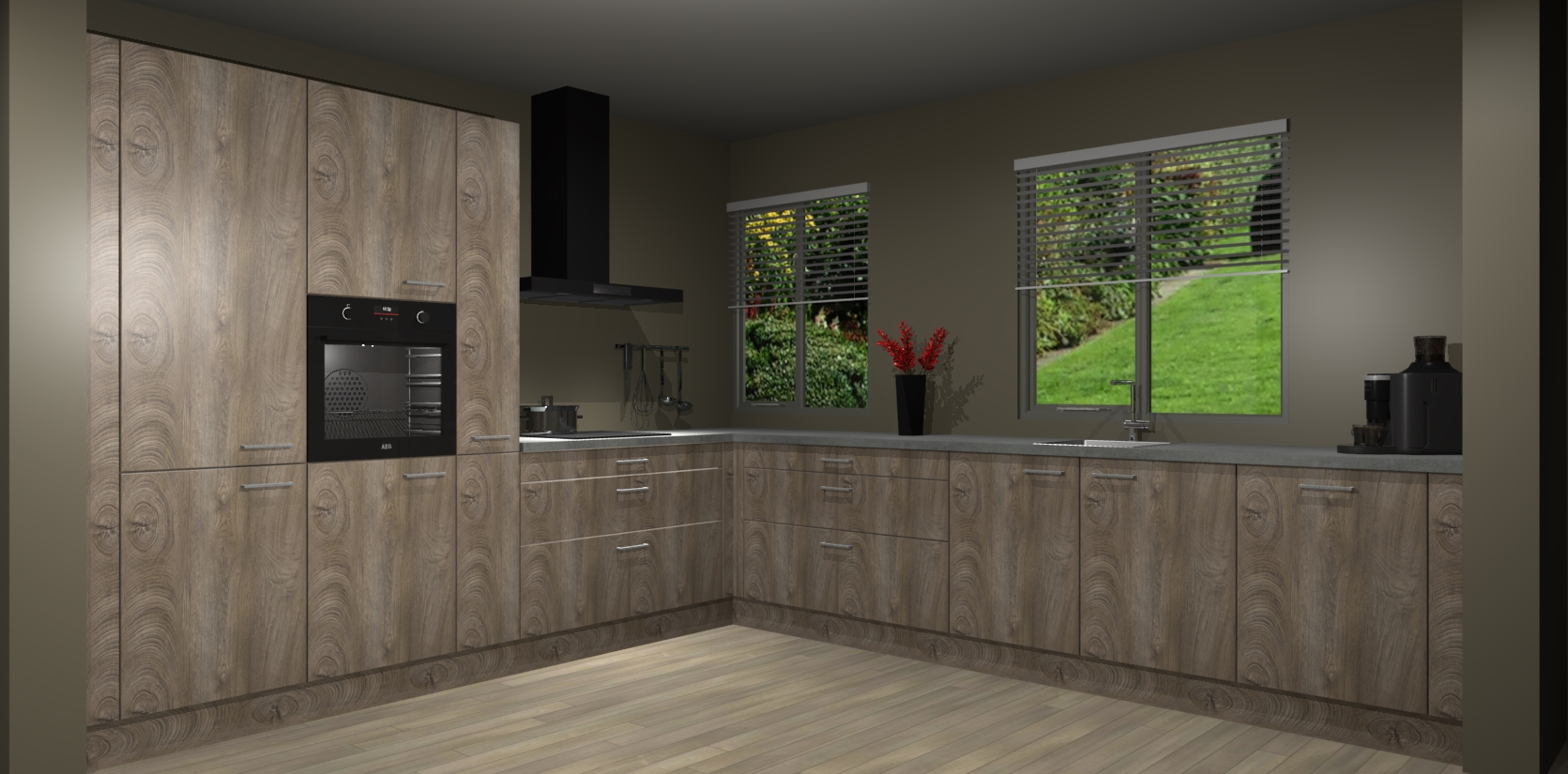 Welkom bij de Cantaro Eiken keuken Palermo. Deze prachtige keuken zal de komende jaren het middelpunt van de belangstelling in uw huis zijn. Uitgerust met vijf inbouwapparaten komt u nooit kookgereedschap tekort. Bovendien geeft de warme houtlook elke ruimte een uitnodigende en tijdloze uitstraling.