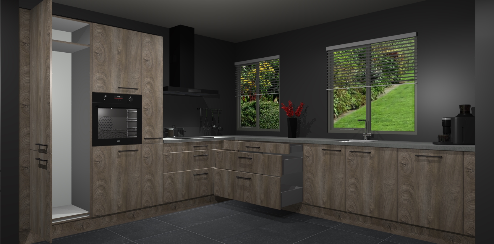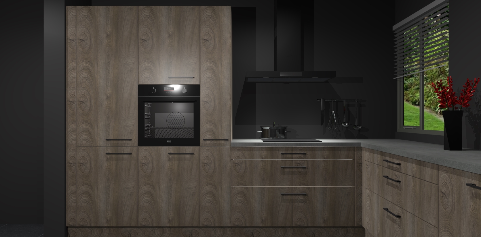 Welkom bij de Cantaro Eiken keuken Palermo. Deze prachtige keuken zal de komende jaren het middelpunt van de belangstelling in uw huis zijn. Uitgerust met vijf inbouwapparaten komt u nooit kookgereedschap tekort. Bovendien geeft de warme houtlook elke ruimte een uitnodigende en tijdloze uitstraling.