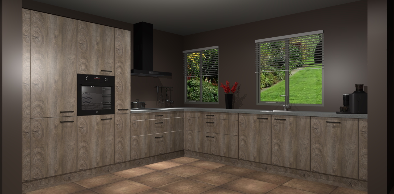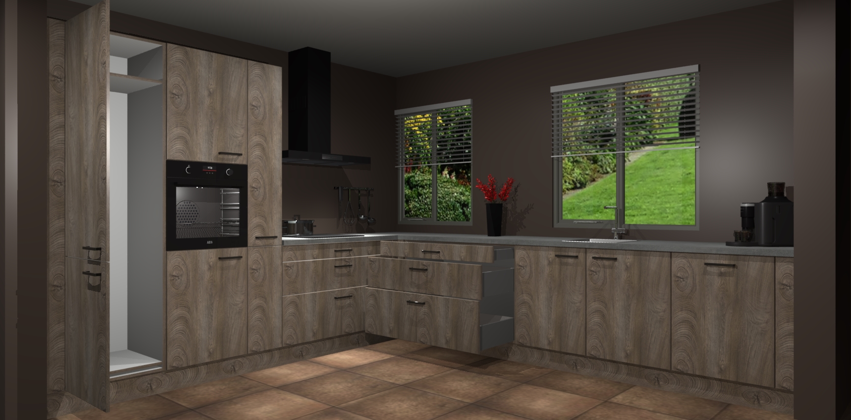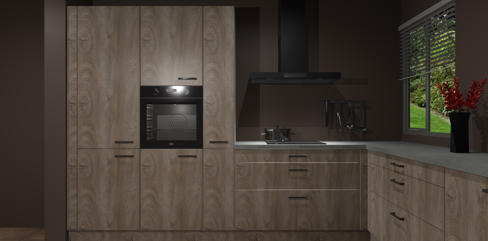 Welkom bij de Cantaro Eiken keuken Palermo. Deze prachtige keuken zal de komende jaren het middelpunt van de belangstelling in uw huis zijn. Uitgerust met vijf inbouwapparaten komt u nooit kookgereedschap tekort. Bovendien geeft de warme houtlook elke ruimte een uitnodigende en tijdloze uitstraling.